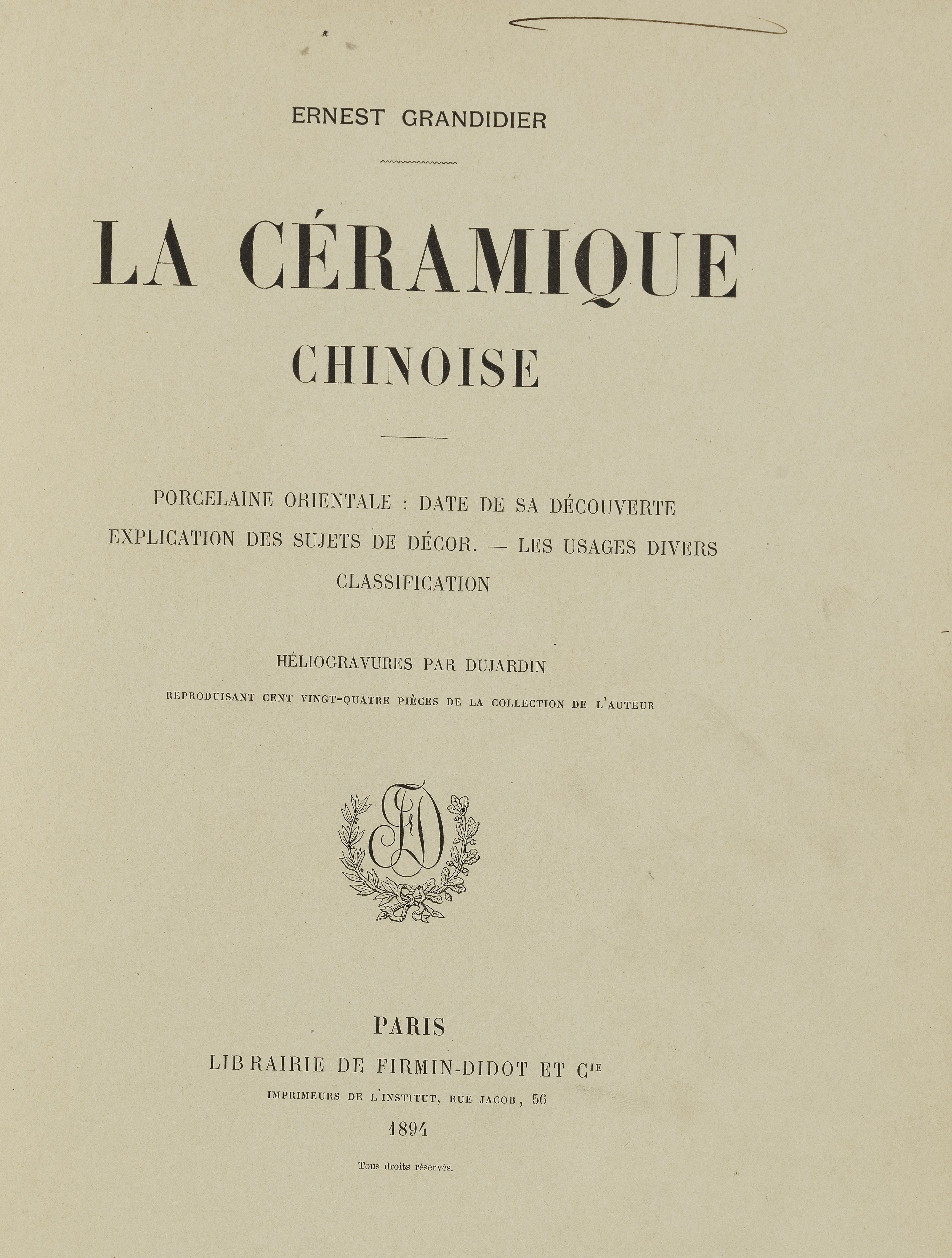 3089. CHINE. GRANDIDIER (Ernest) : La Céramique chinoise