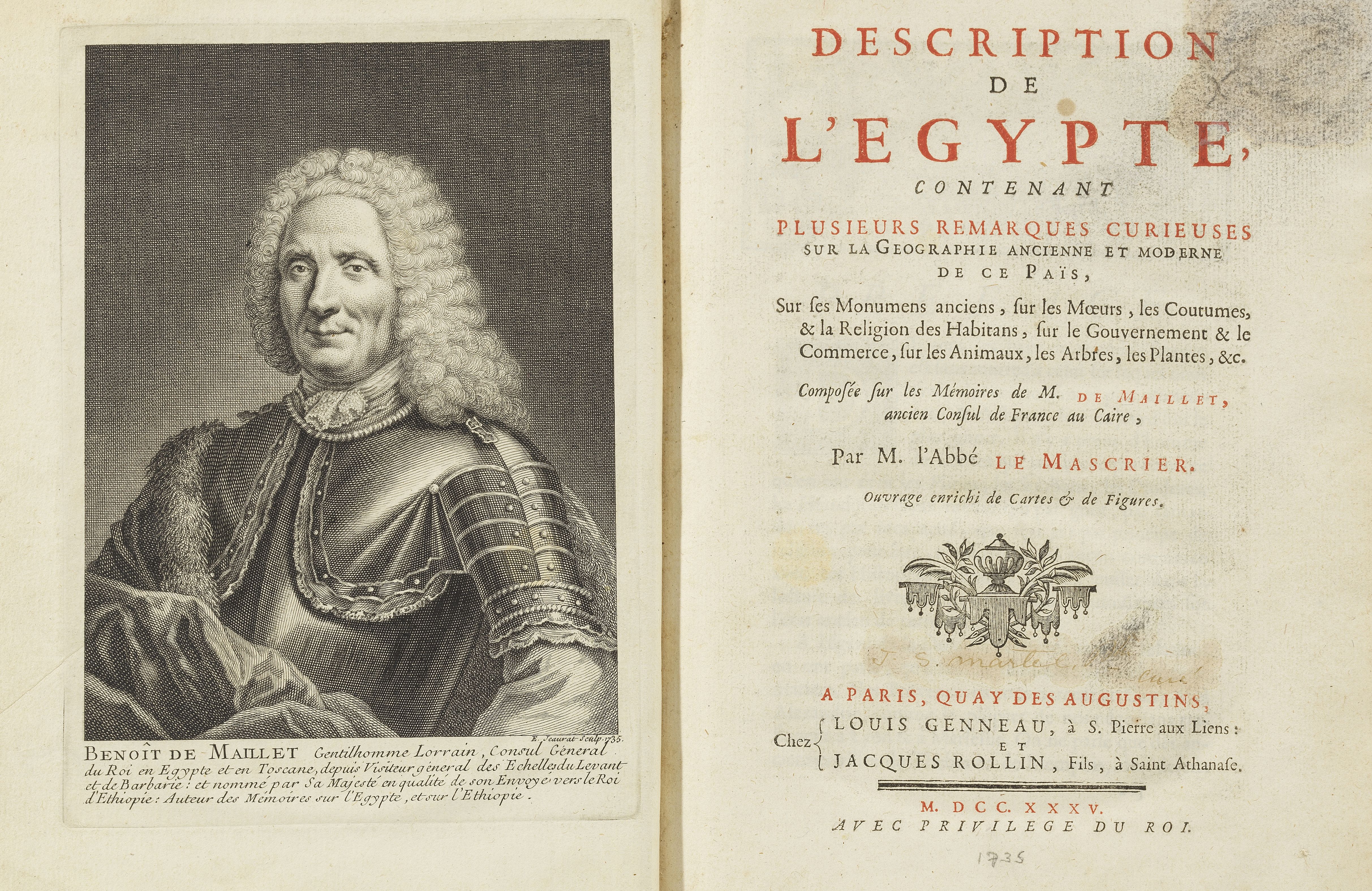 3009. EGYPTE. LE MASCRIER (Abbé) – MAILLET (Benoît de) : Description d...