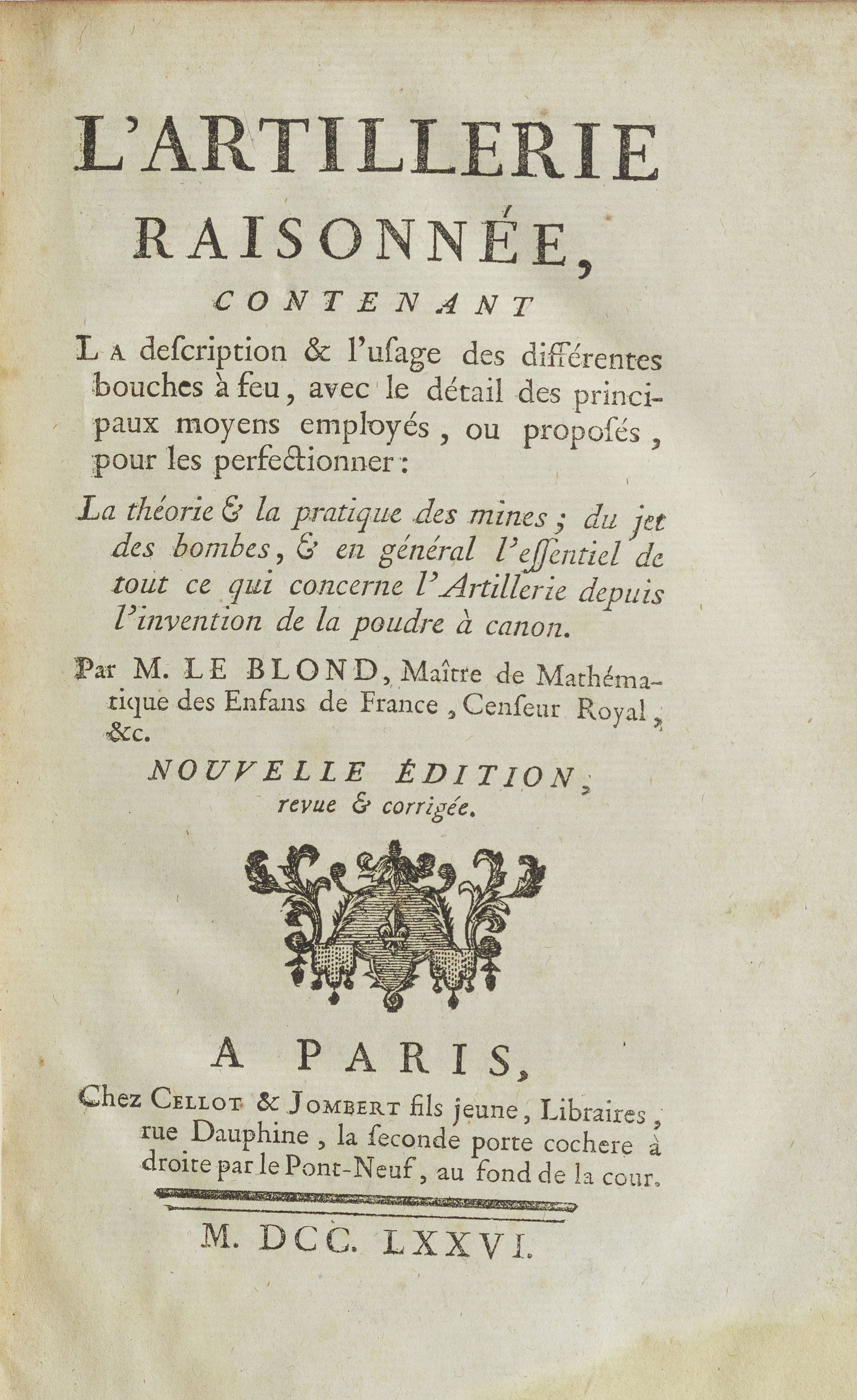 3020. MILITARIA. LE BLOND : l’Artillerie raisonnée, contenant la descr...