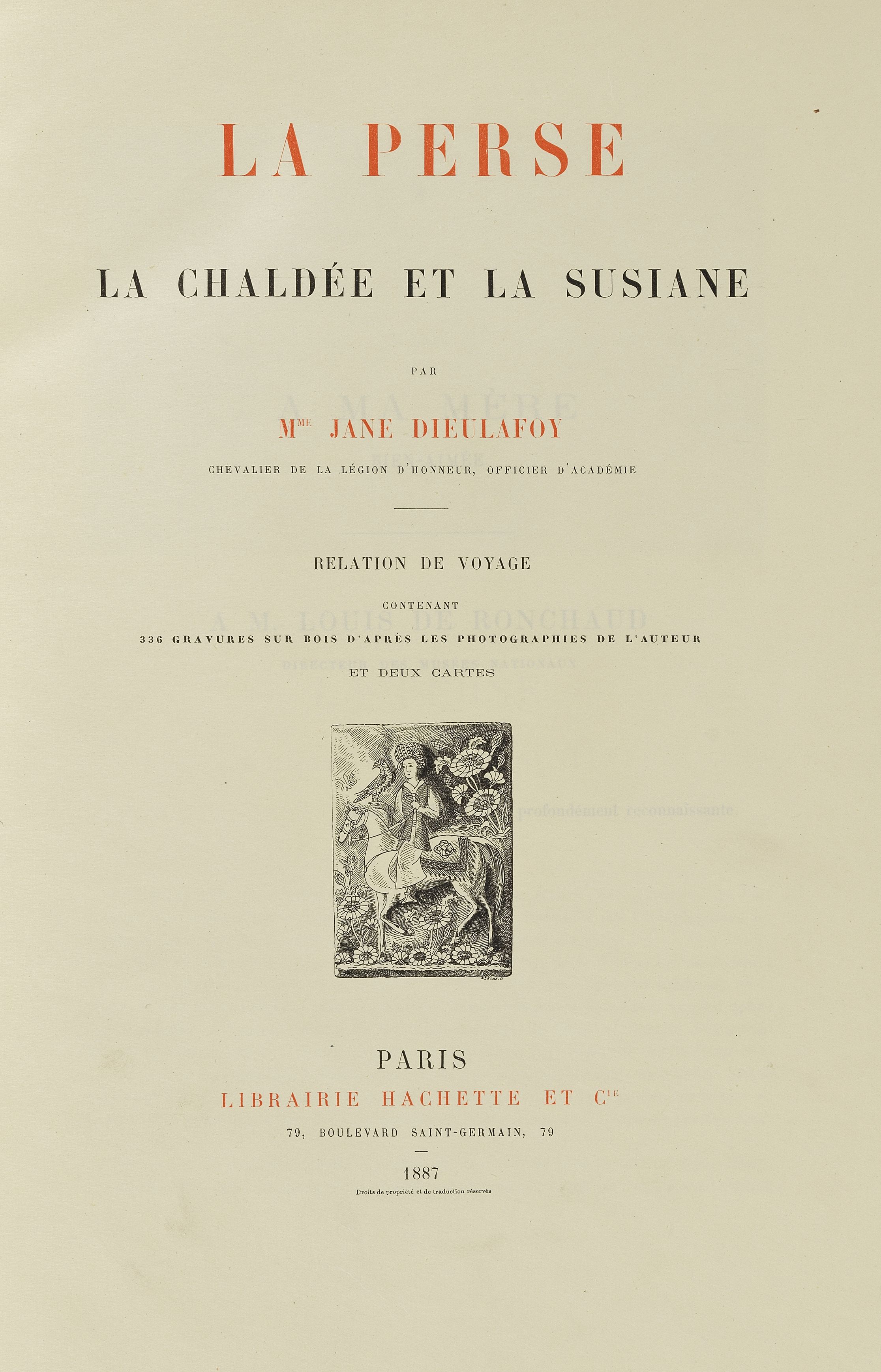 3087. PERSE DIEULAFOY (Jane) : La Perse, la Chaldée et la Susiane