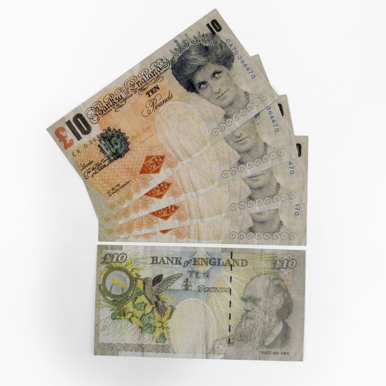 Di-Faced Tenner (2004), suite de 5 tirages offset, 14,4x7,6 cm