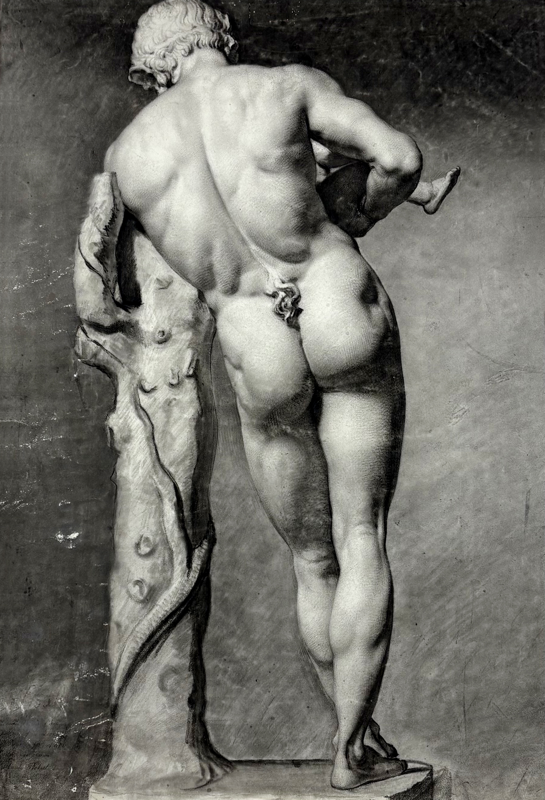 Elégante, pierre noire réhaussée à la craie, au verso étude d'at...