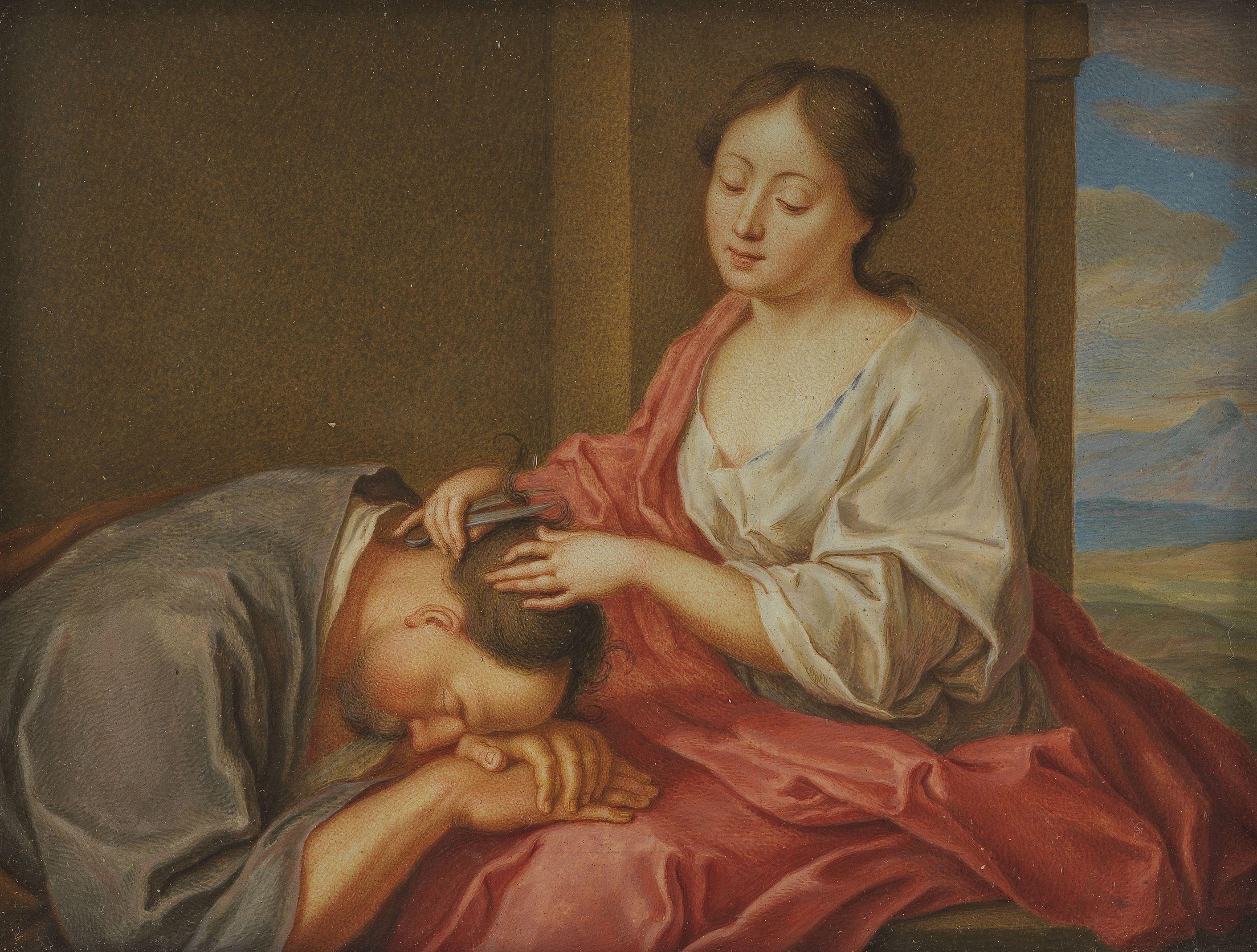 Samson et Dalila, miniature sur vélin, 11x15 cm. Provenance: anc...