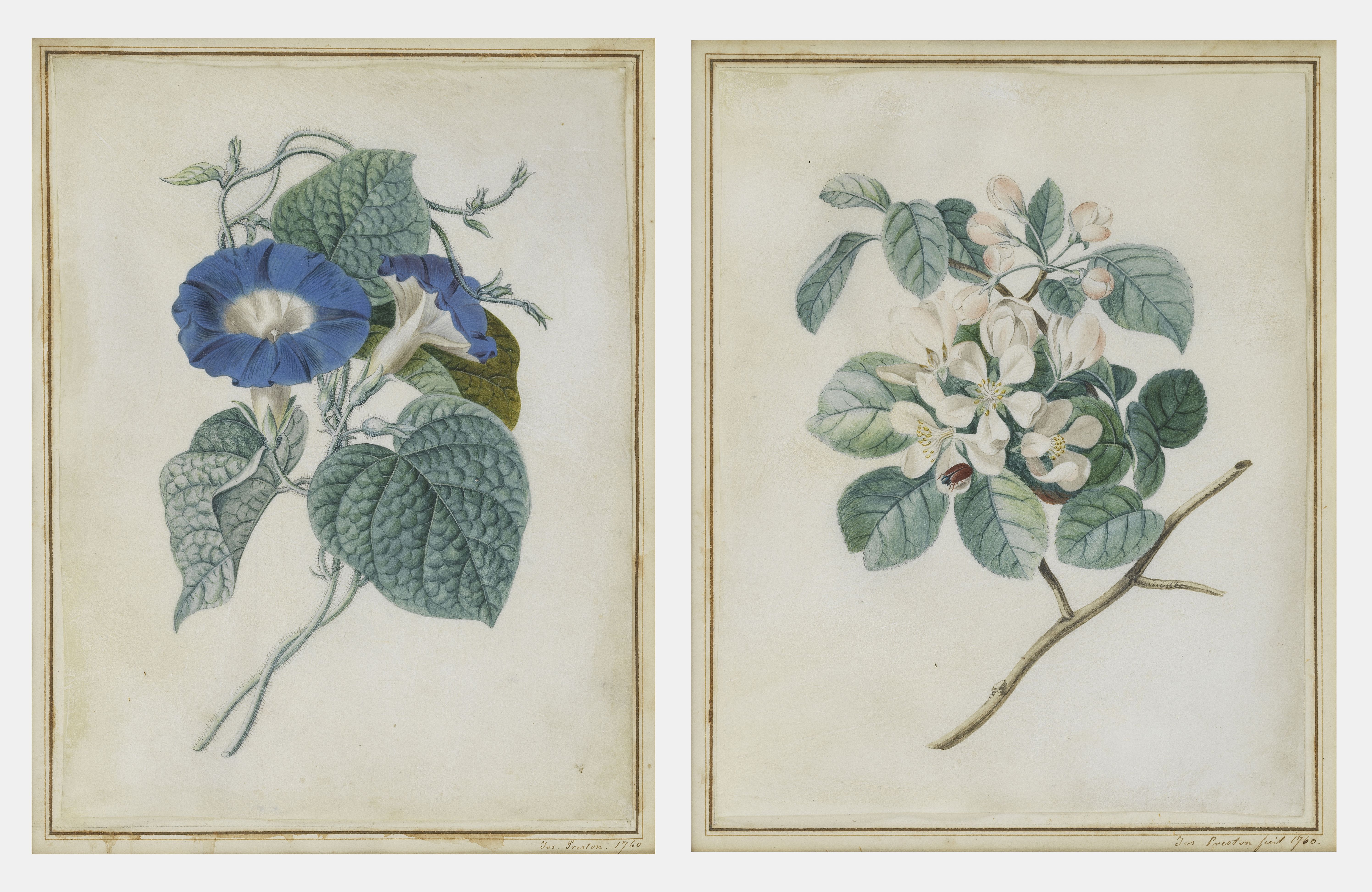 Liseron et prunier, paire d'aquarelles sur velin, signées et dat...