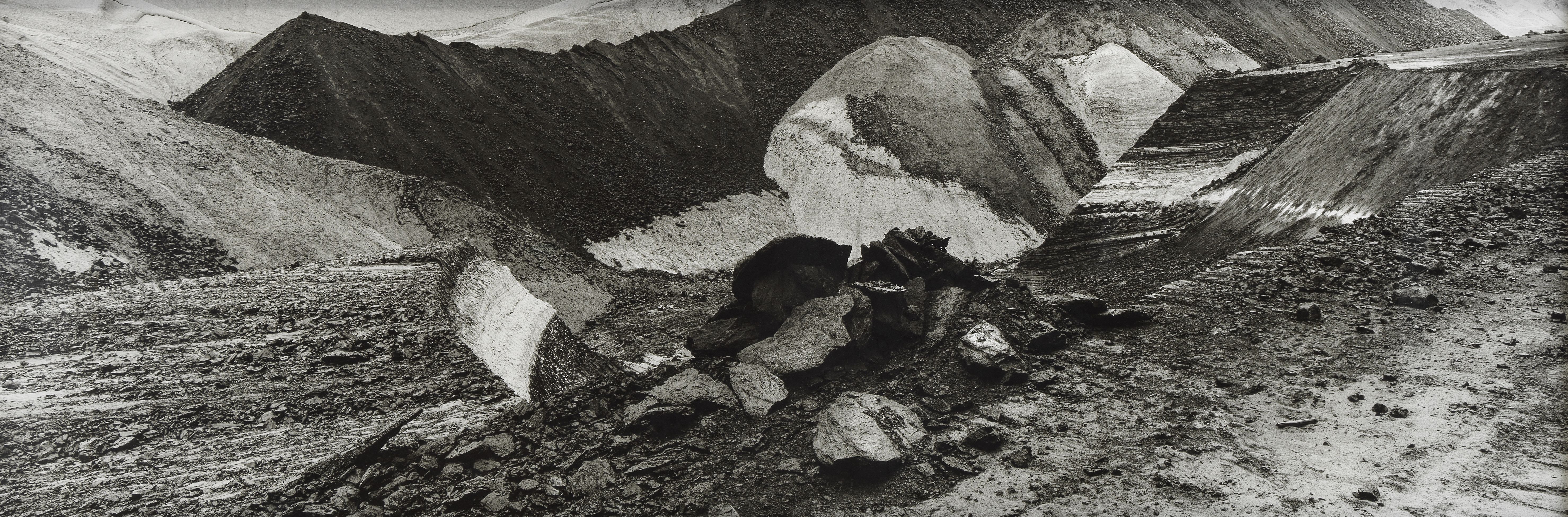 Composition rocailleuse, photographie, signée au dos, 39x120 cm