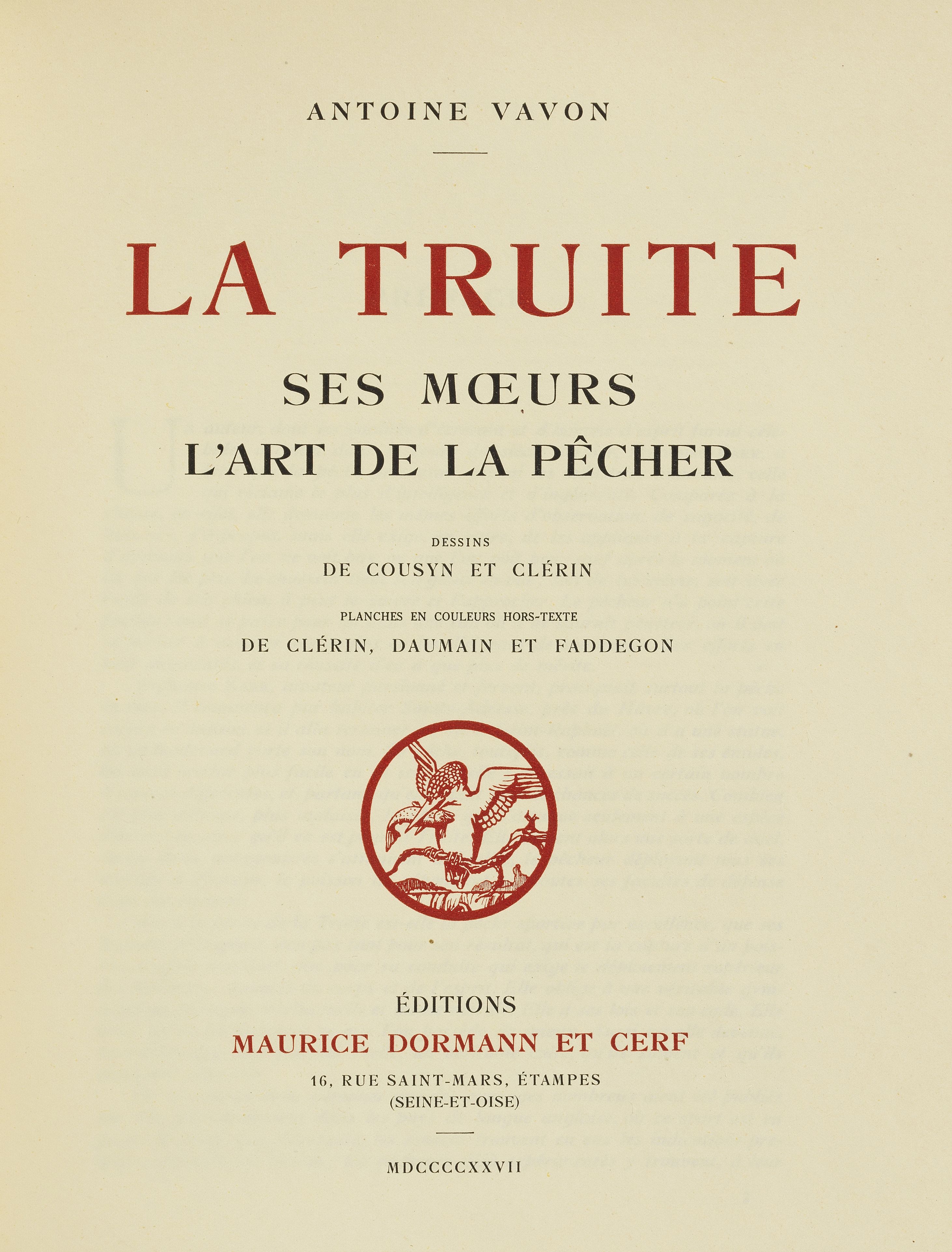 3103. PECHE. VAVON (Antoine) : La Truite. Ses mœurs. L’Art de la pêche...