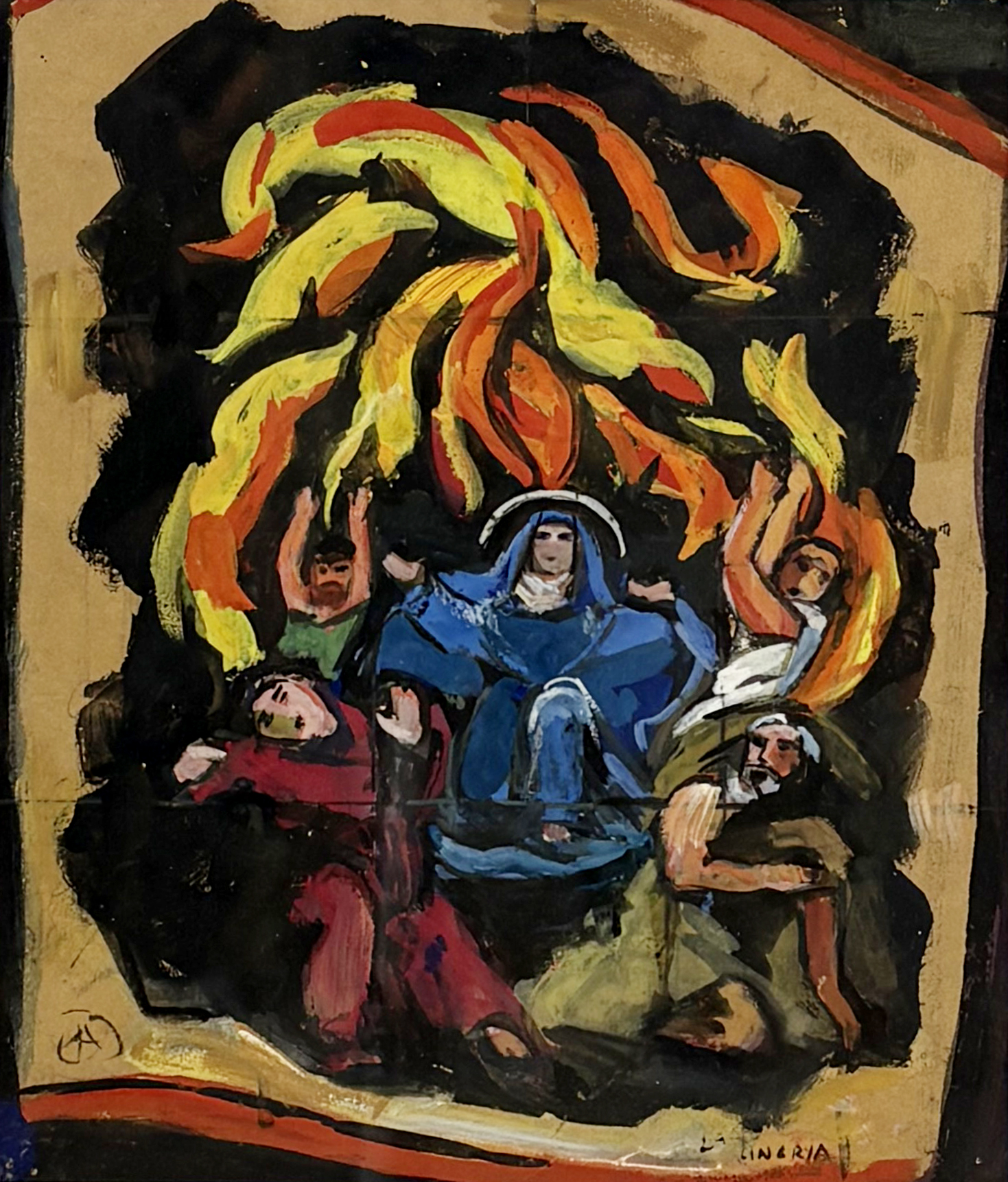 Vierge à l'Enfant, aquarelle sur papier, monogrammée, 20x16 cm