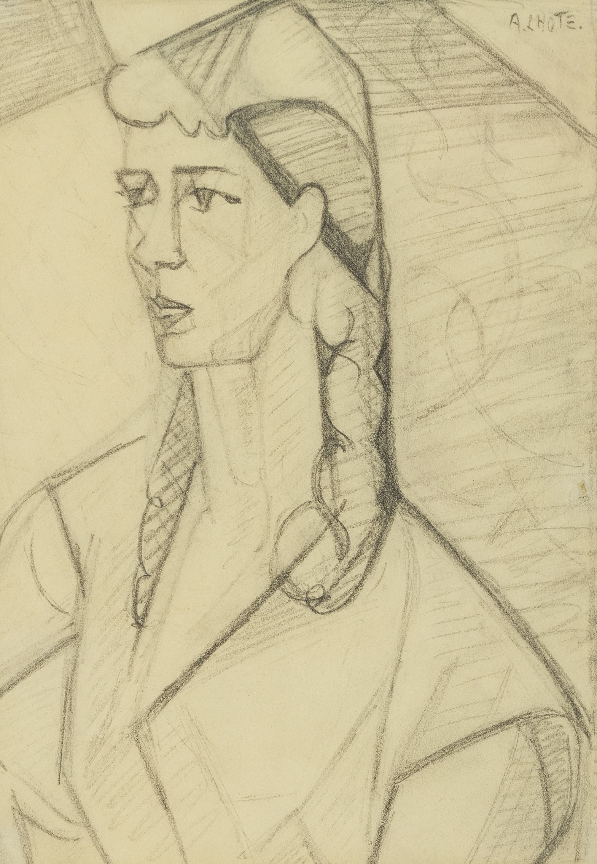 Portrait cubiste de jeune fille aux tresses, mine de plomb sur p...