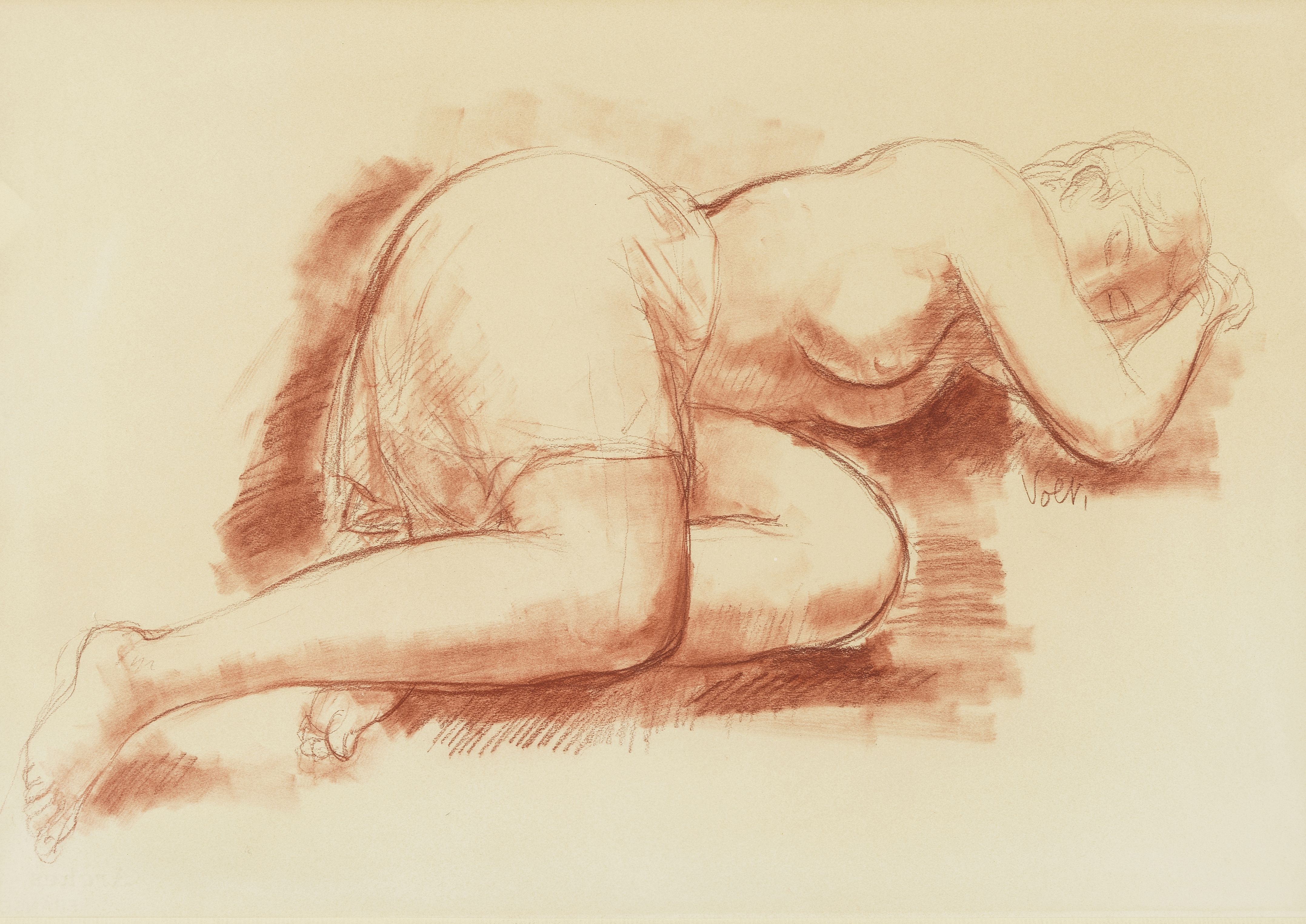 Portrait de femme en prière, mine de plomb, sanguine et craie, s...