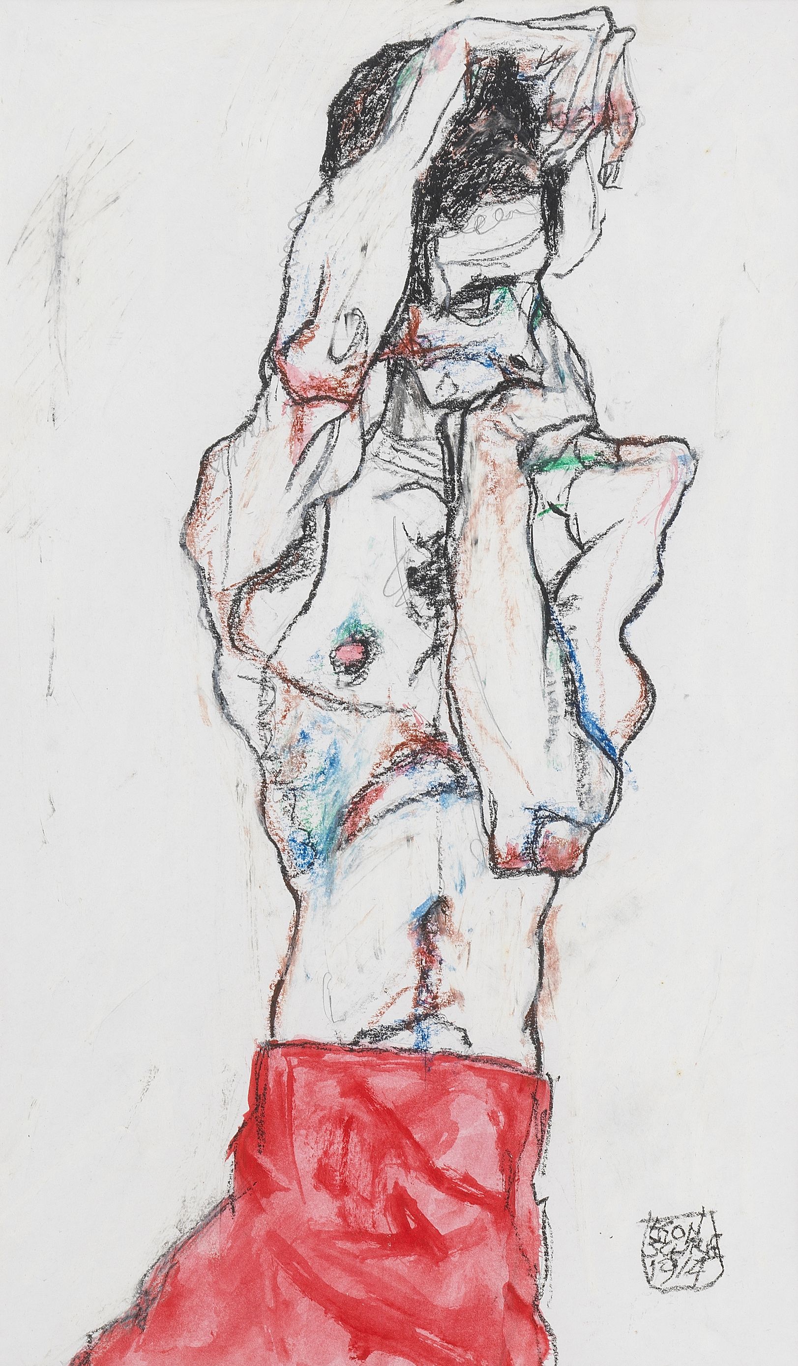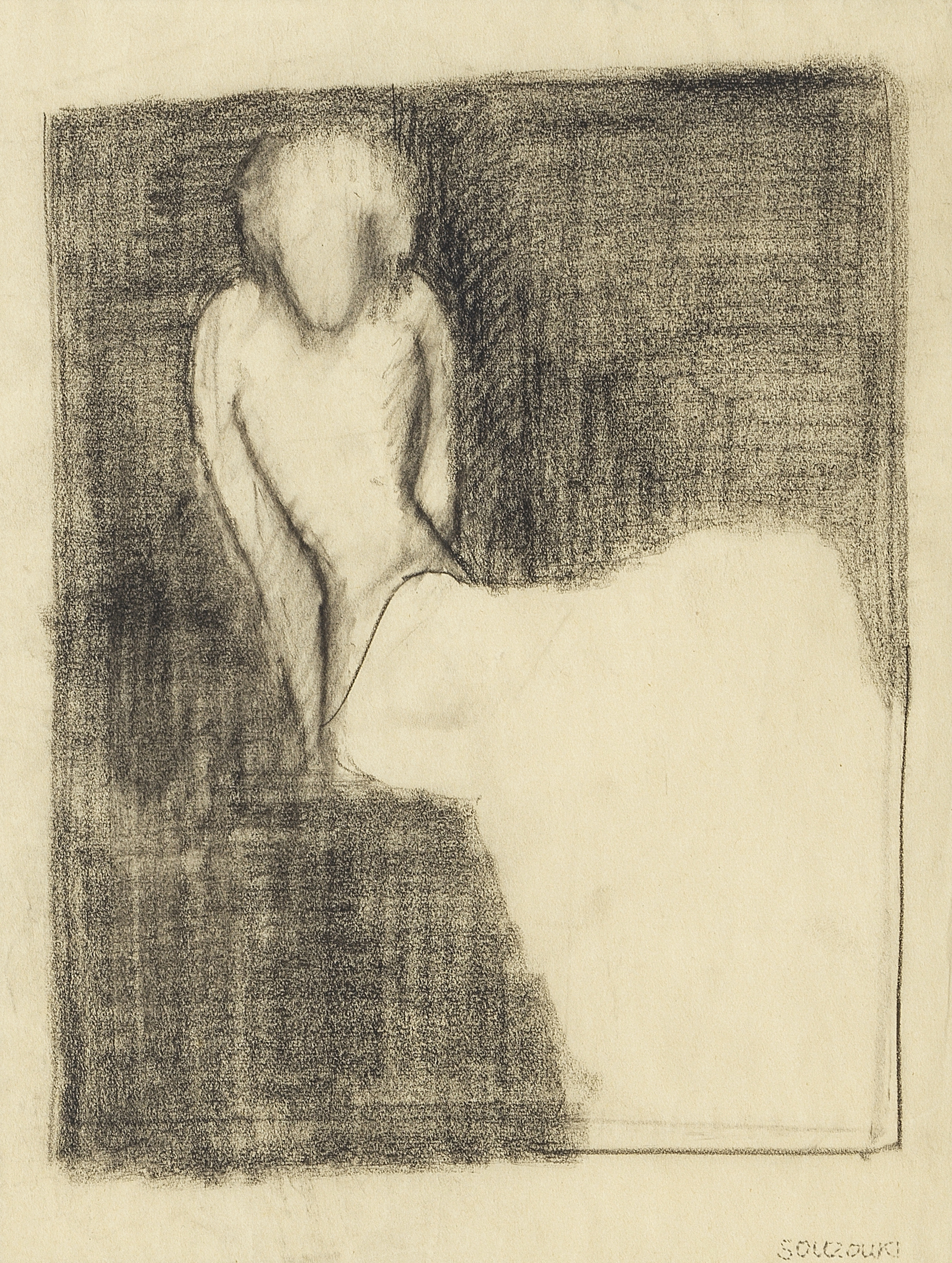 Femme aux seins nus, fusain sur papier, 35x25 cm