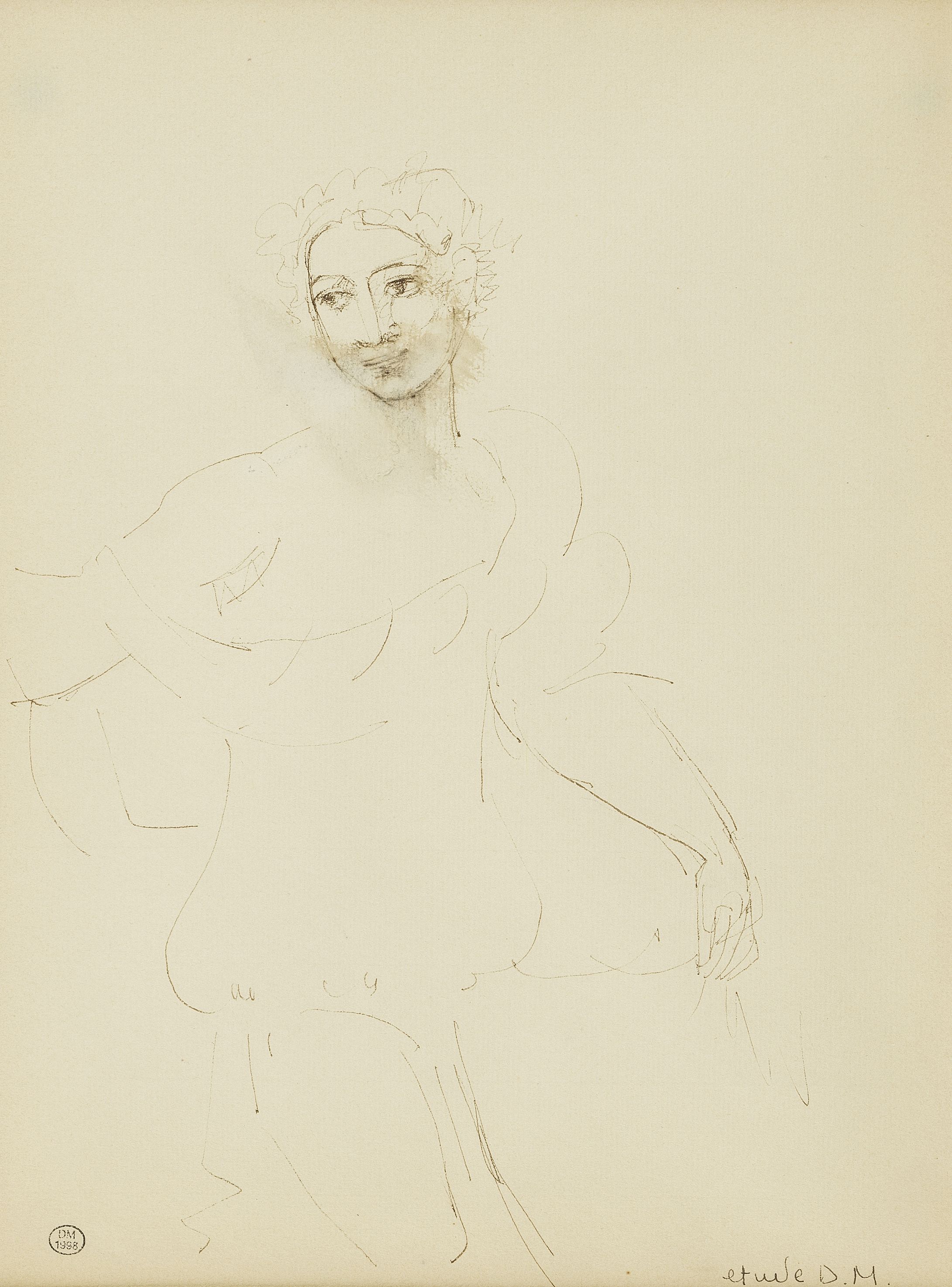 Etude de jeune femme, encre sur papier, monogrammé, cachet d'ate...