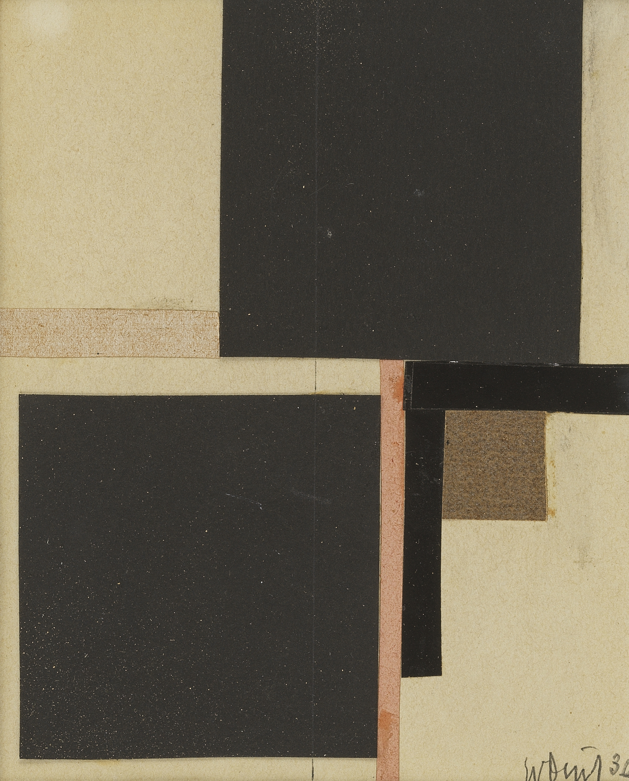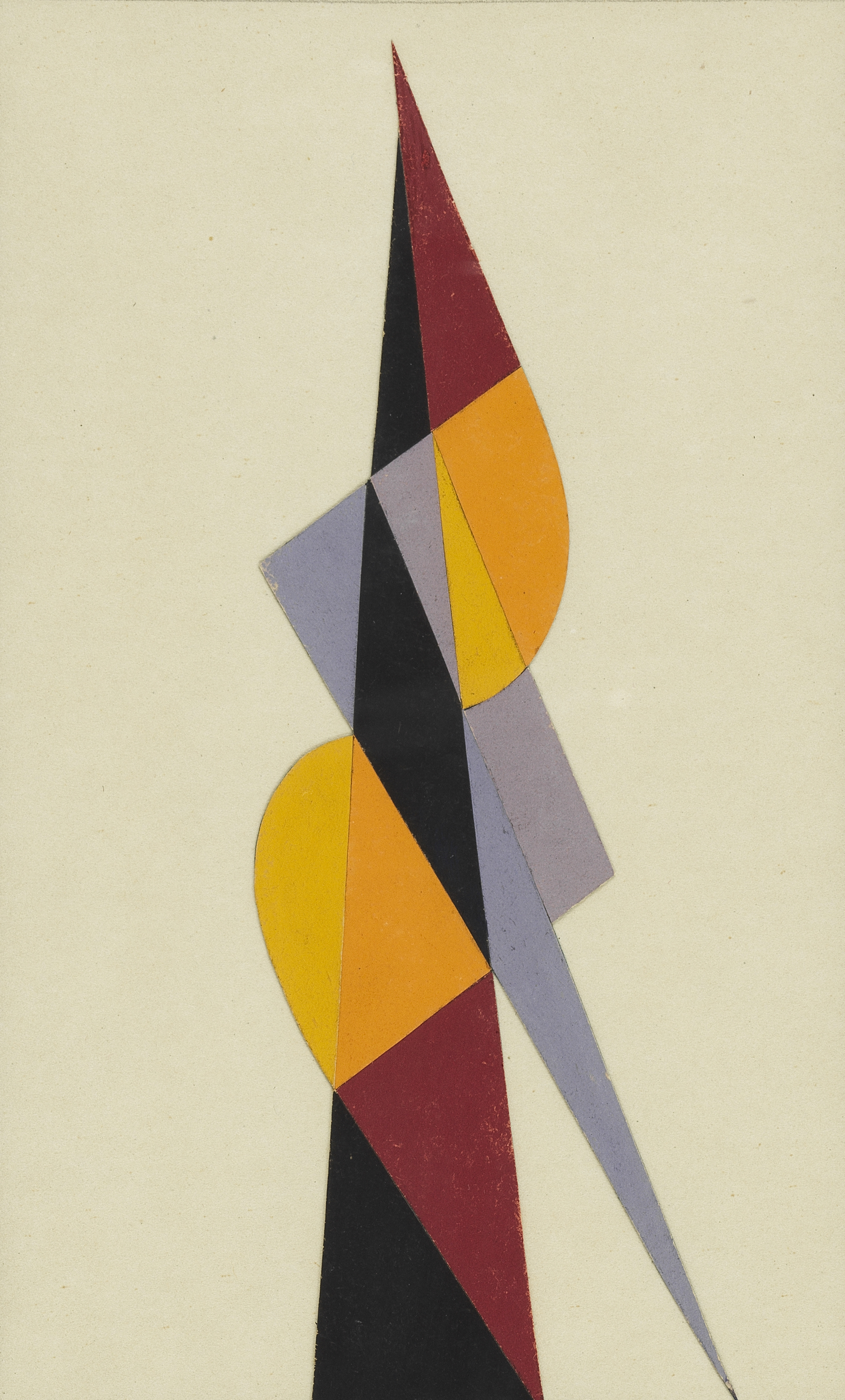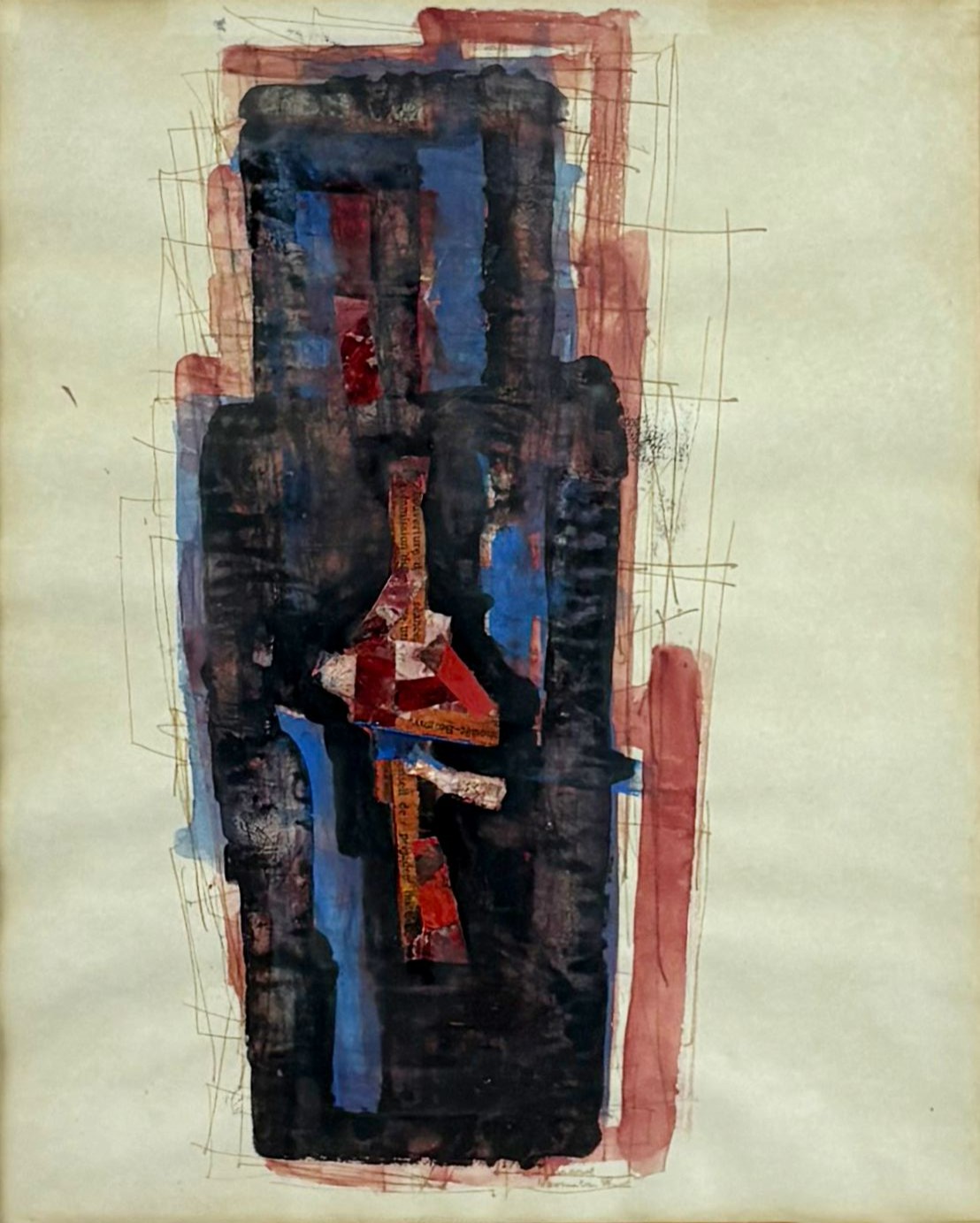Abstraction géométrique, collage et aquarelle, signature non ide...