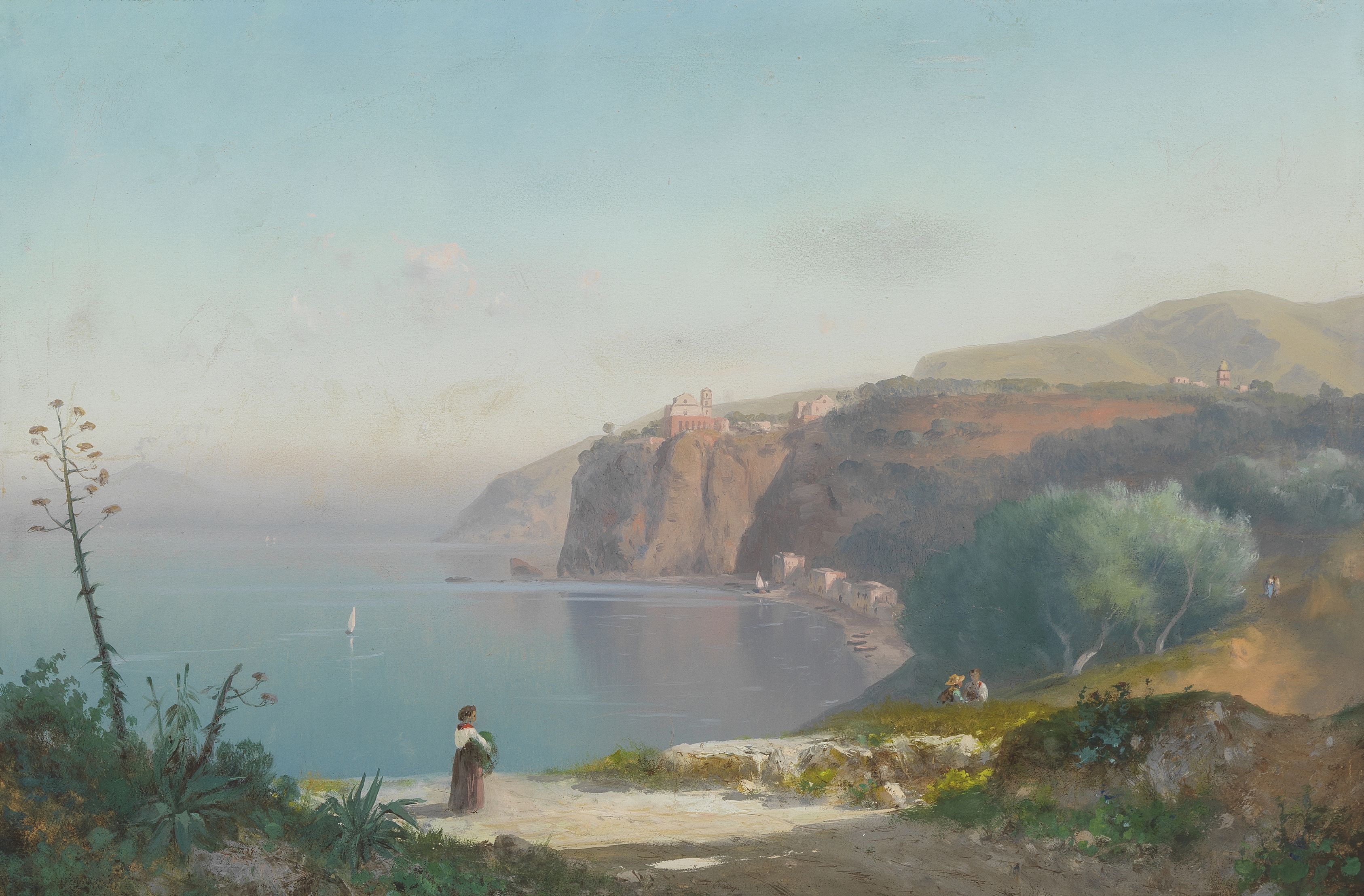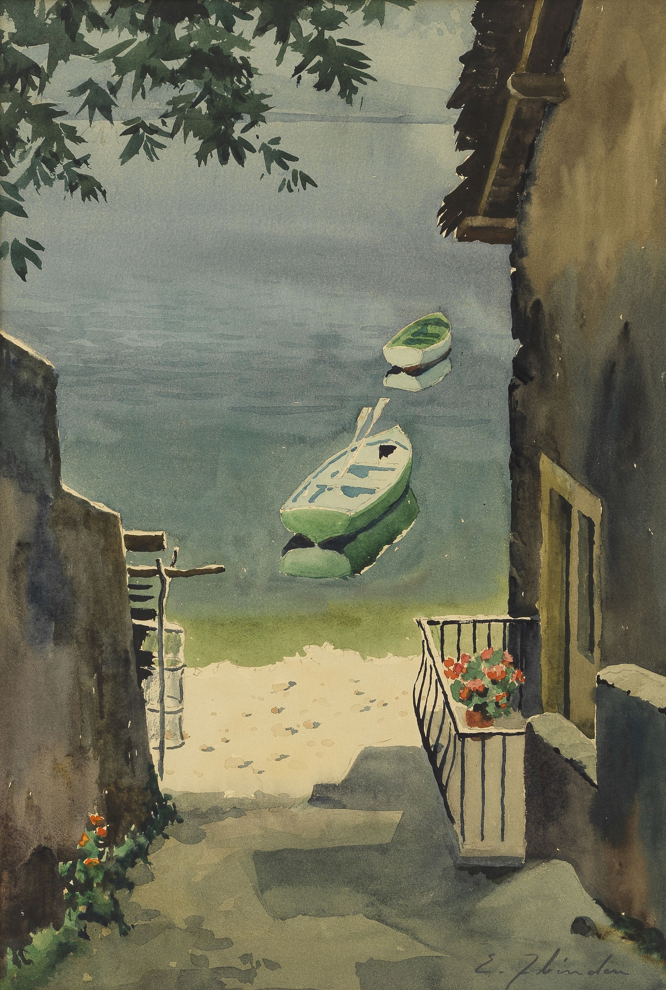 Baie animée de Sorrento, gouache sur papier, 37x55 cm