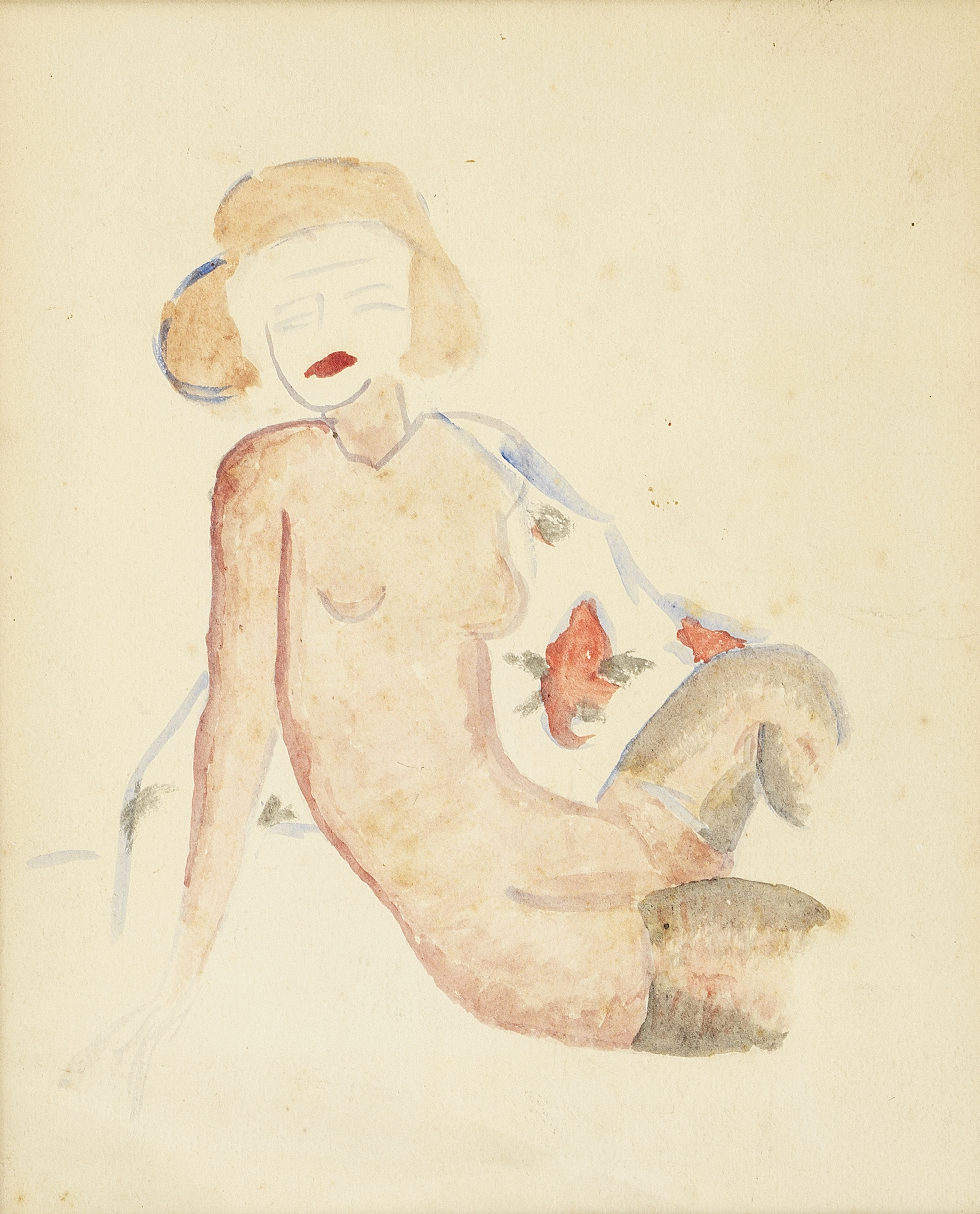 Abstraction et Nu assis, aquarelle sur papier recto verso, signé...