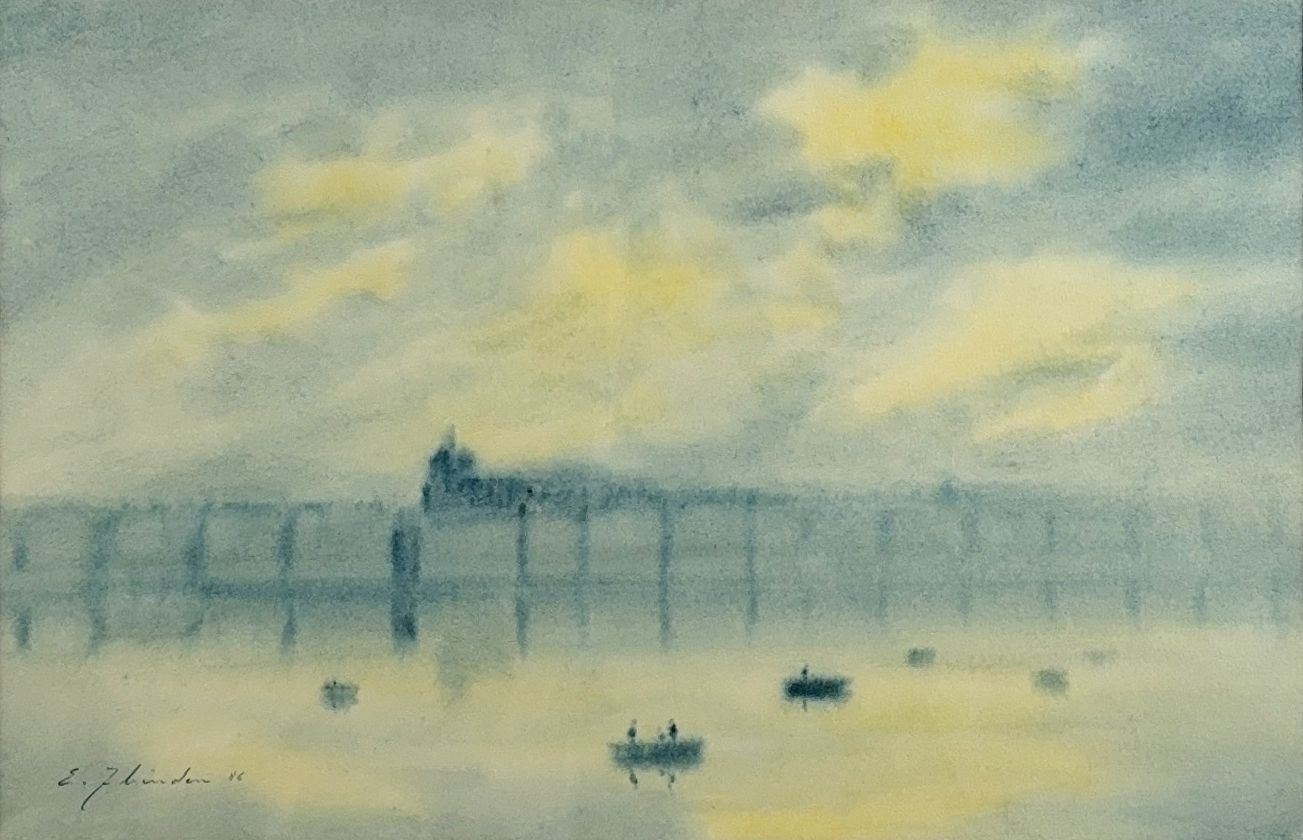 Atmosphère de brume, aquarelle, signée et datée 86, 34x49 cm