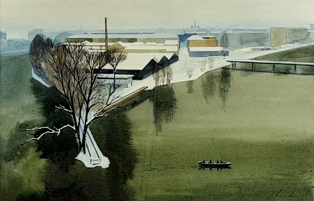 La jonction, vue du pont, aquarelle, signée et datée 79, 32x47 c...