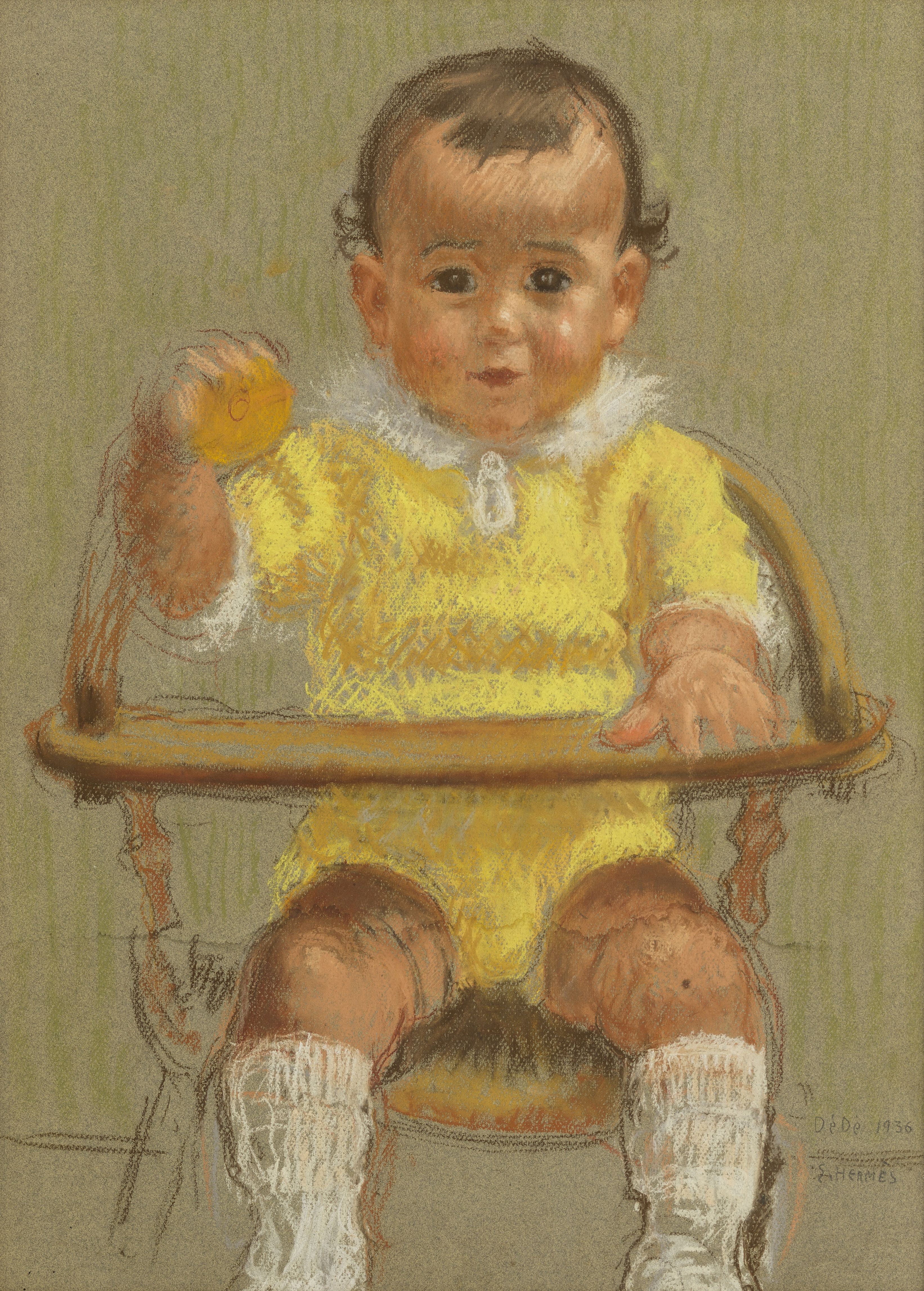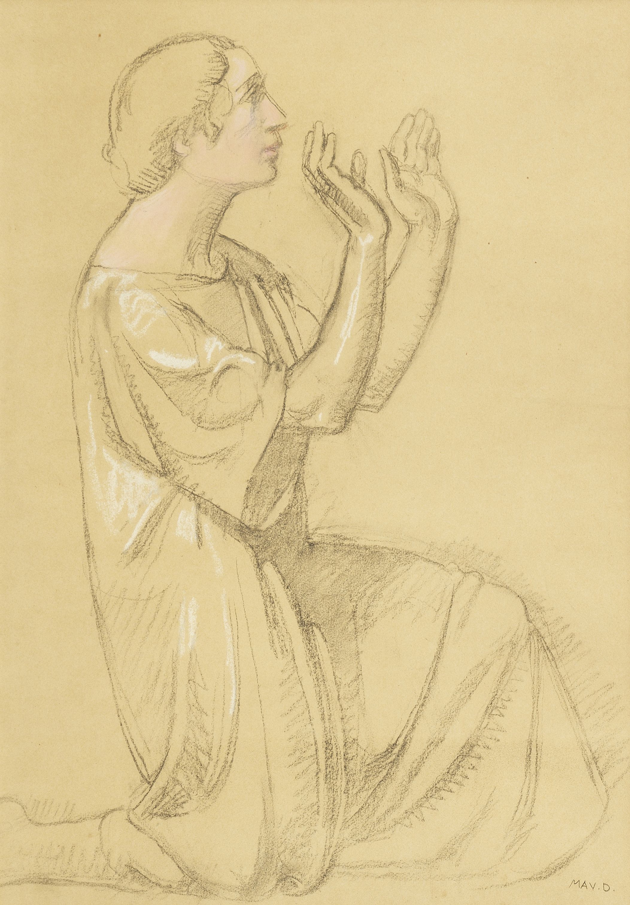 La communiante, crayon, estompe, rehauts de craie blanche et san...