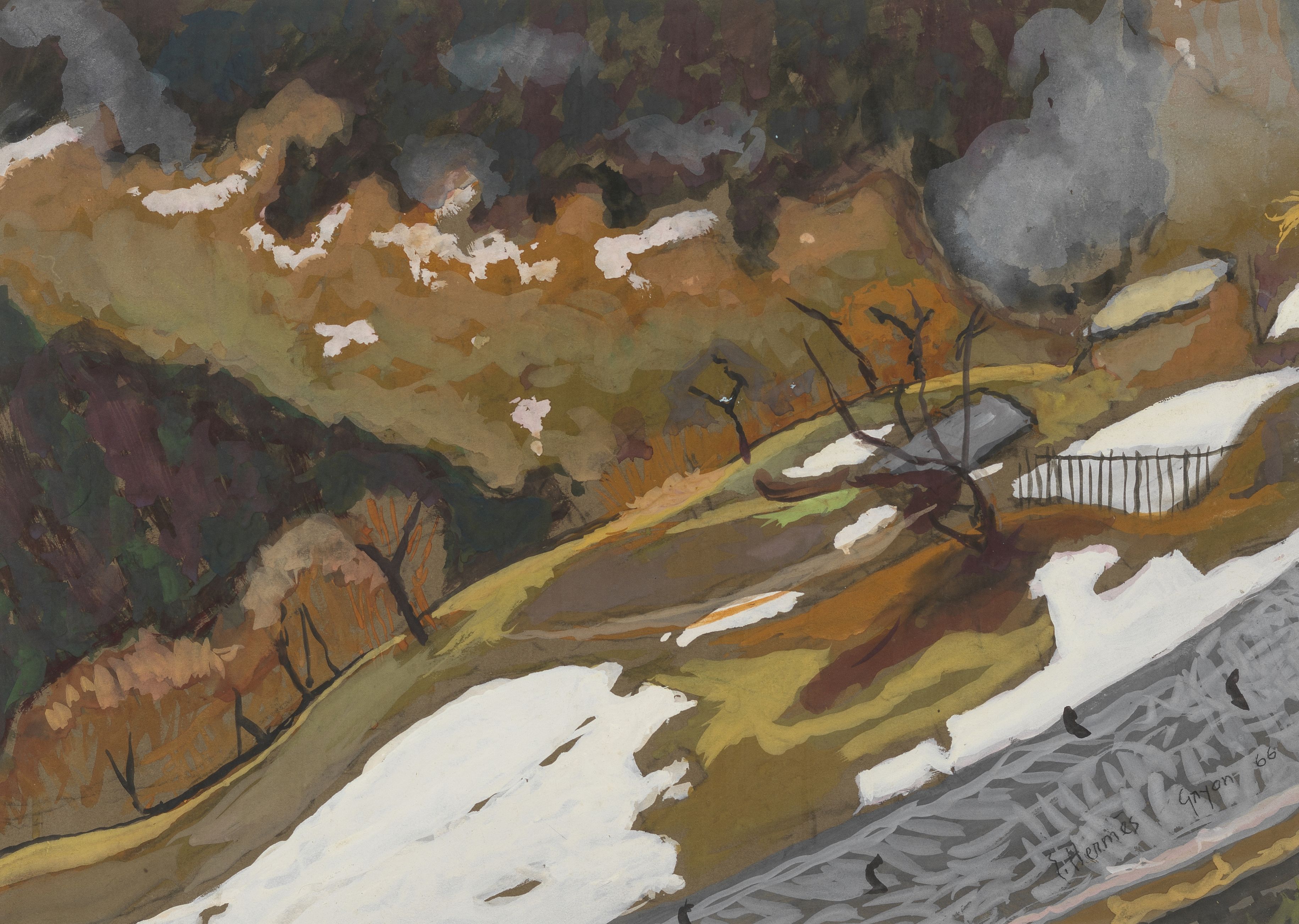 Fonte des neiges à Gryon, gouache sur papier, signée et datée 66...