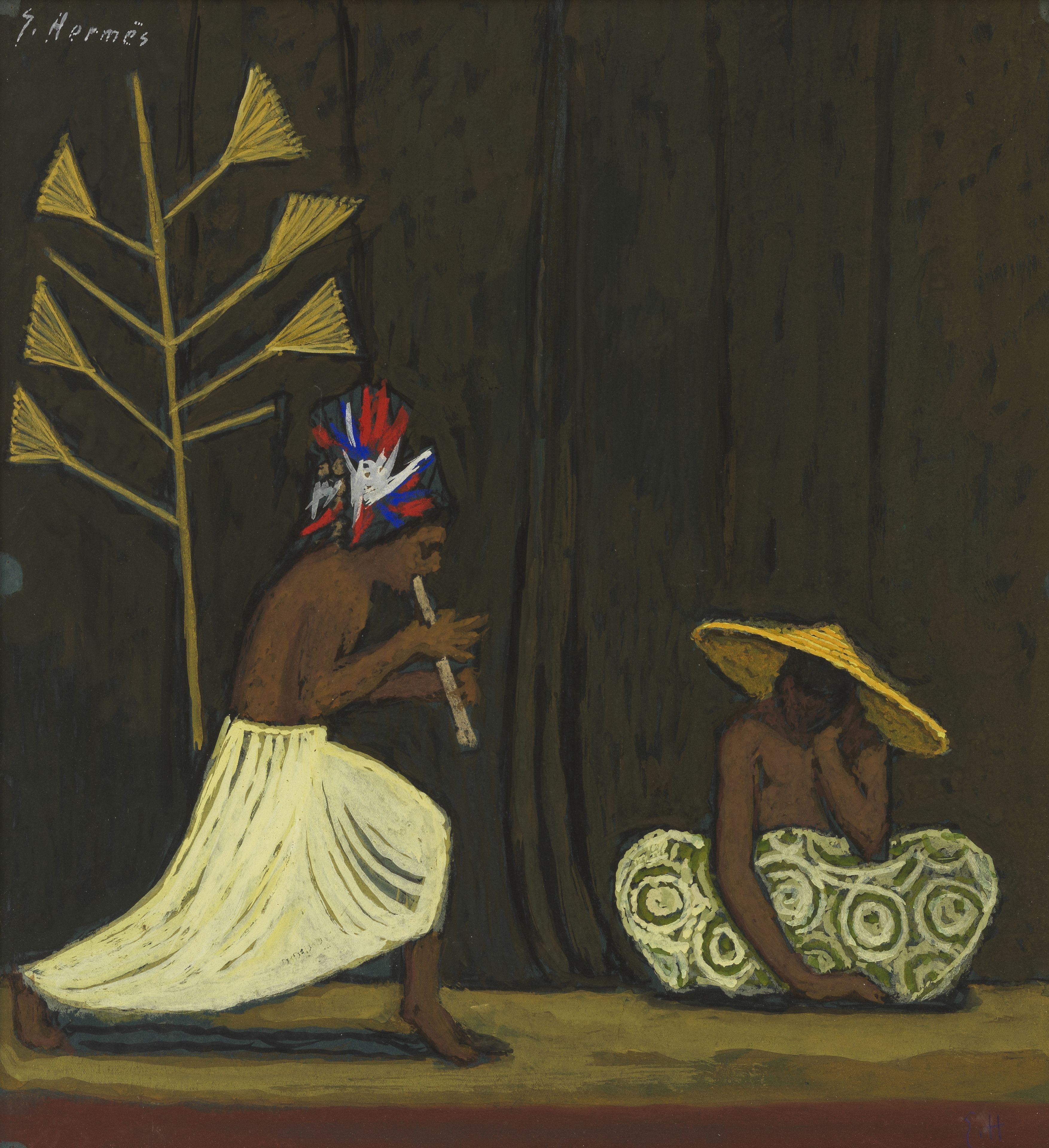 Danse exotique, gouache sur papier, monogrammée, signée, 49x45 c...