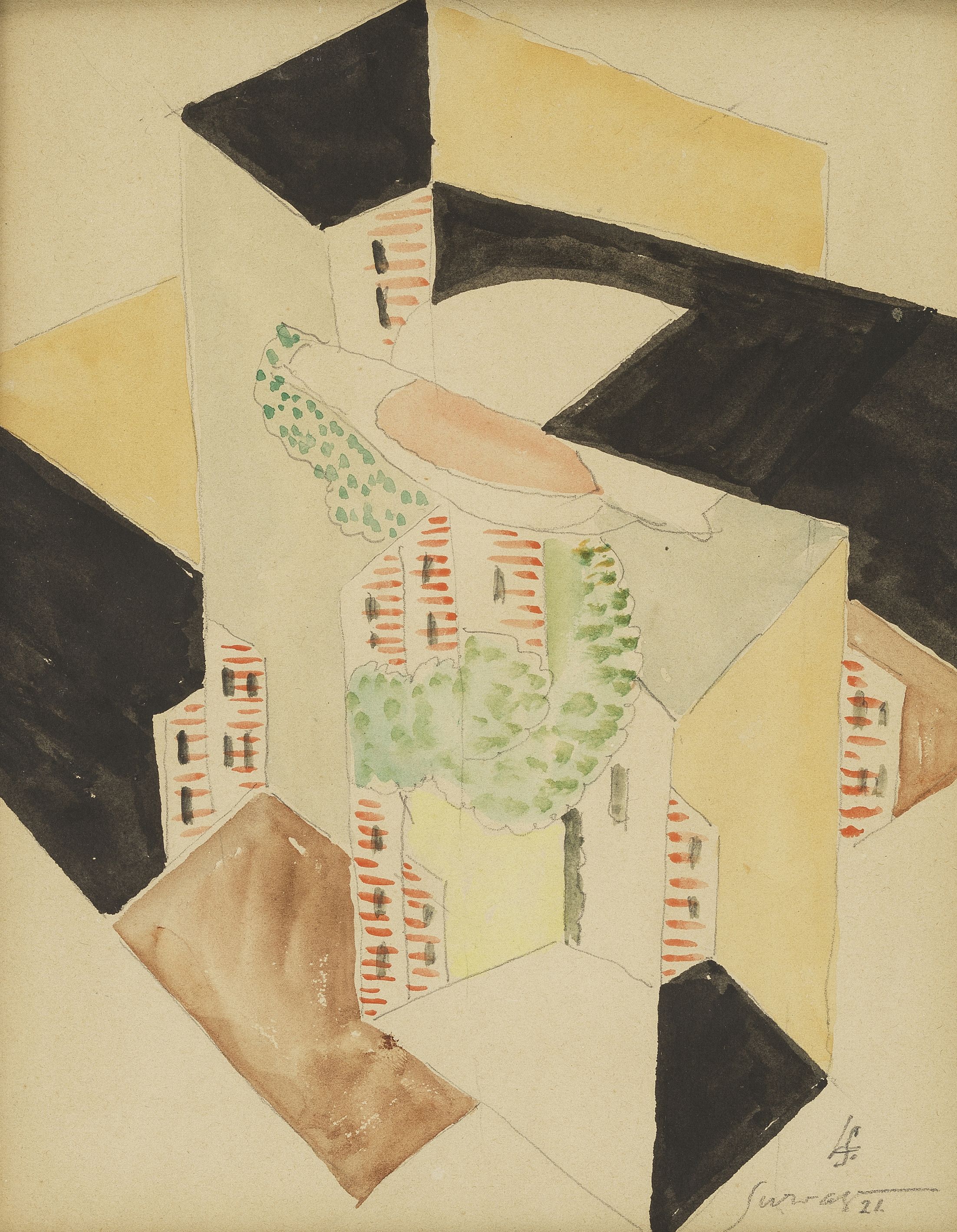 Géométrie, aquarelle sur papier, monogrammée, signée et datée 21...