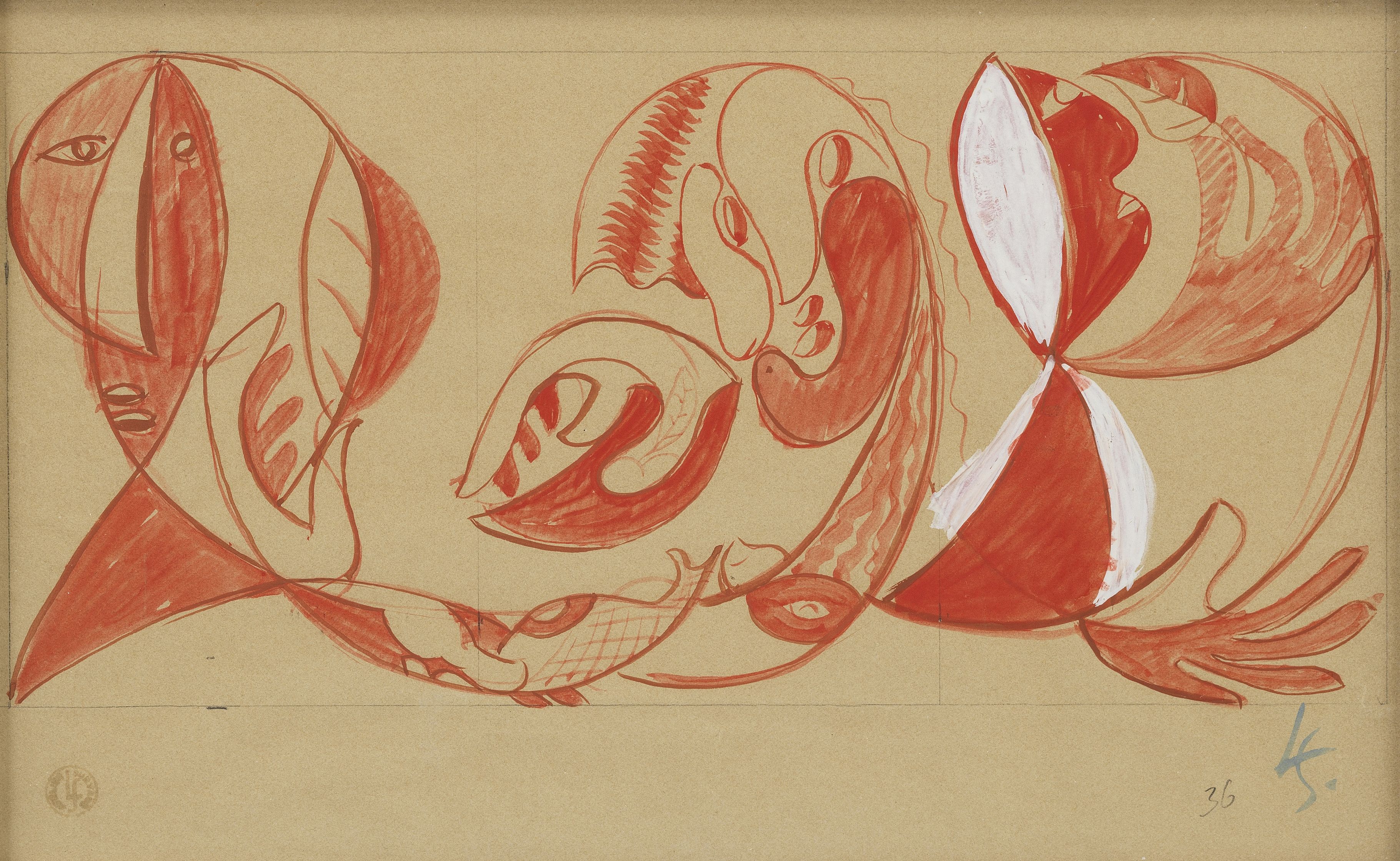 Composition, gouache sur papier, cachet Artcurial, 10x14,5 cm