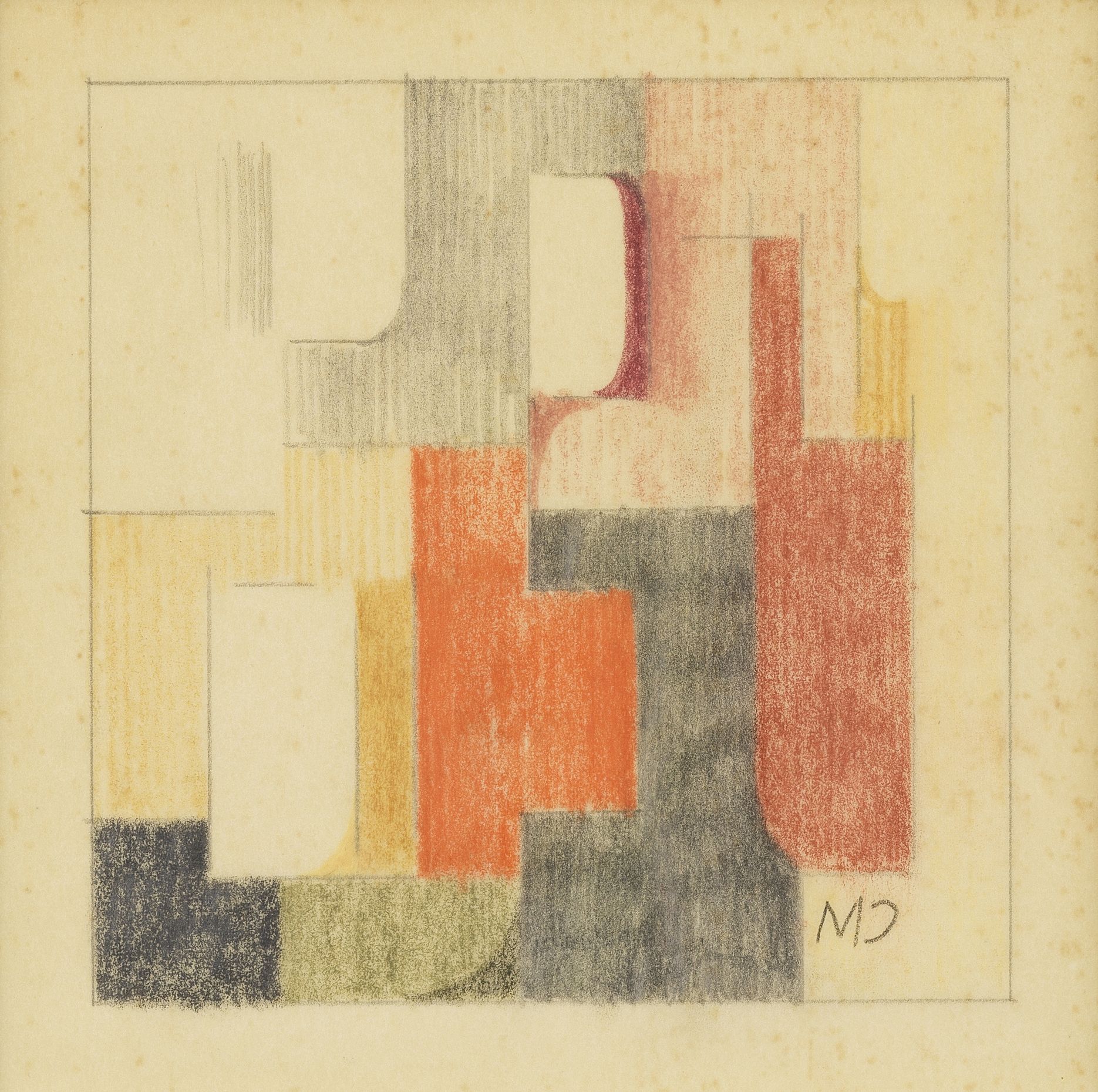 Composition abstraite, pastel sur papier, monogrammé, 10x10 cm