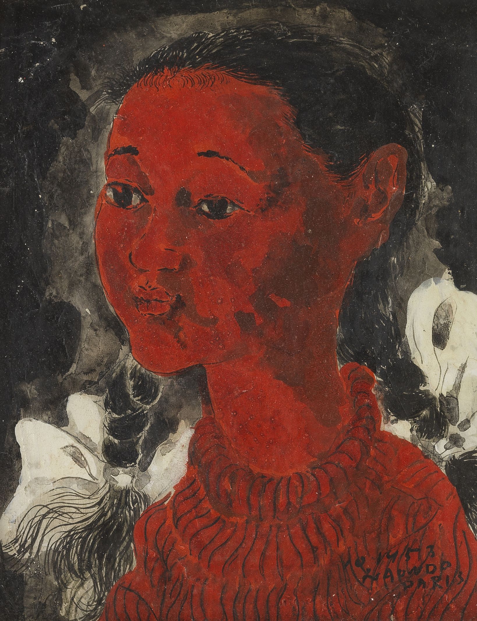 Portrait de femme, gouache sur papier, signée et datée 1953