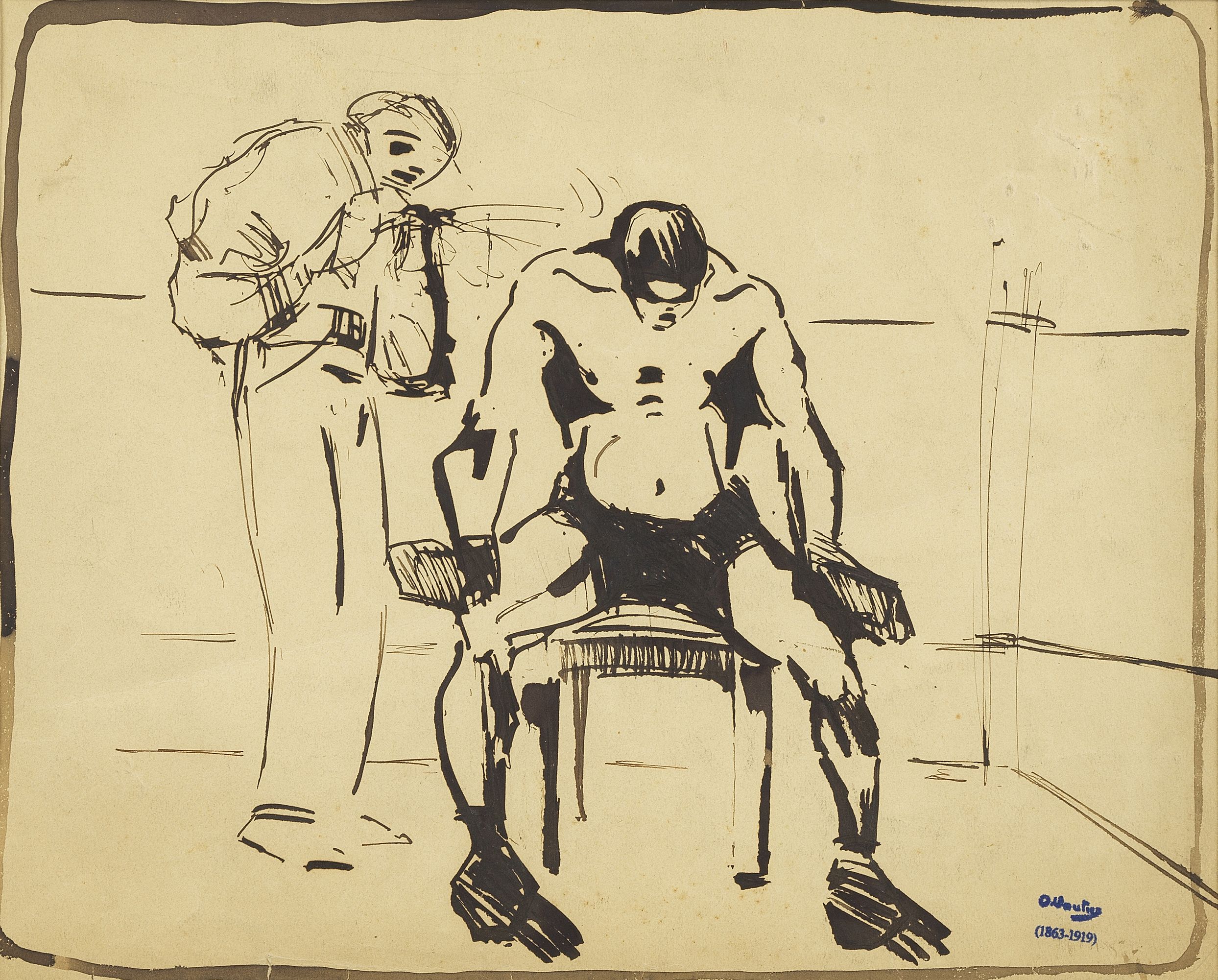 Le boxeur, encre sur papier, cachet de l'atelier, 33x40 cm