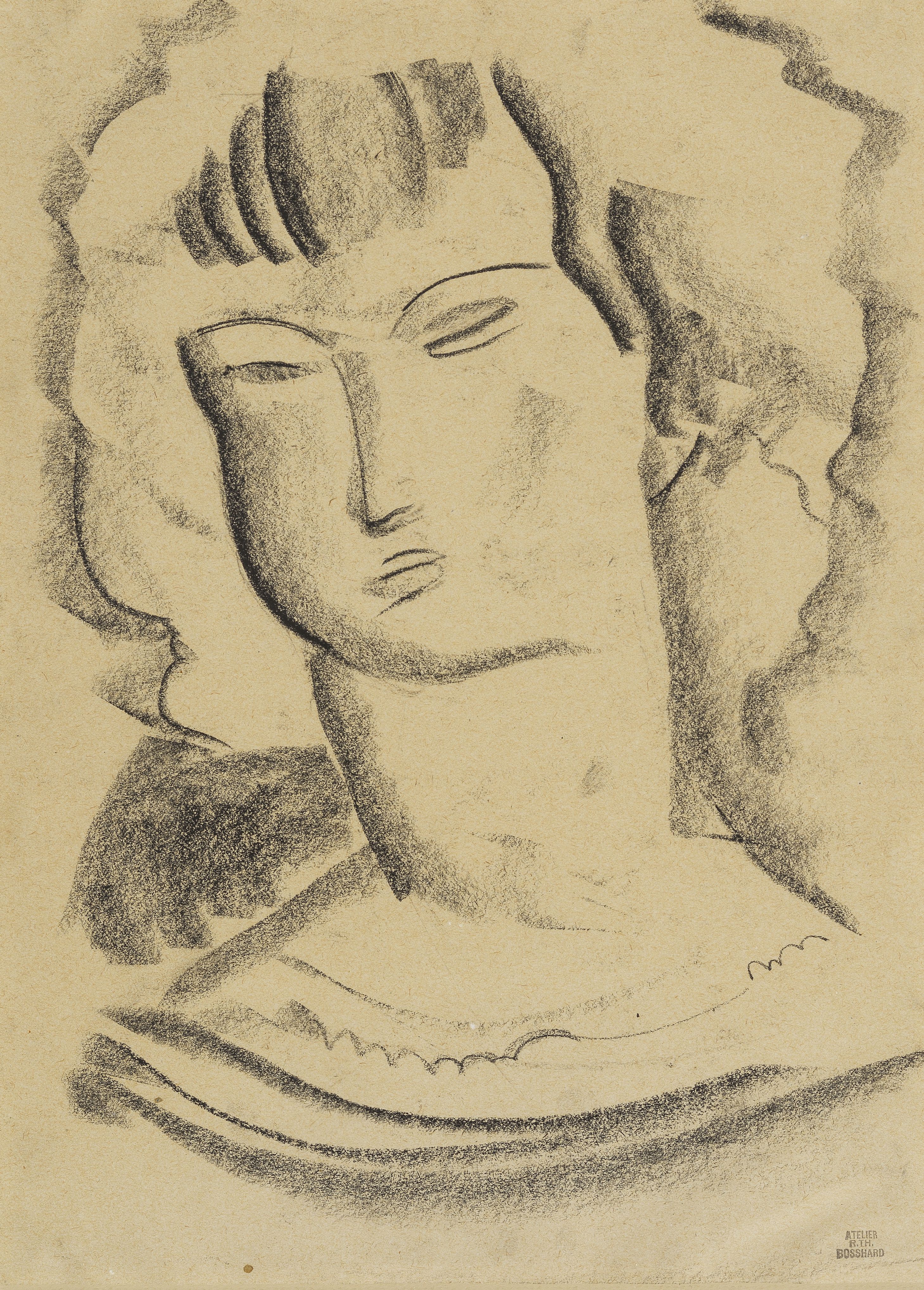 Portrait de femme, crayon gras sur papier, cachet de l'atelier,...