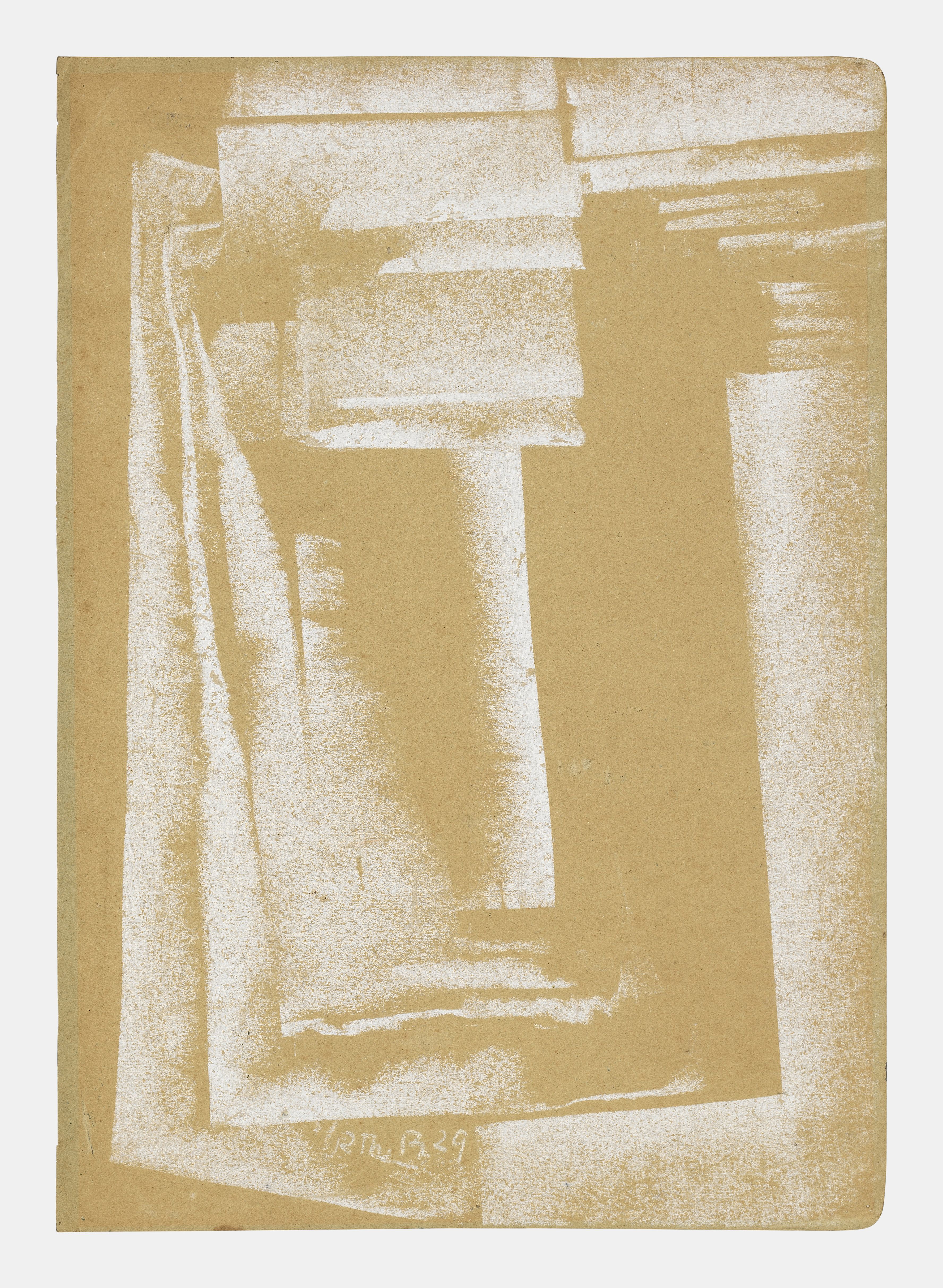 Visage abstrait, craie blanche signée et datée 29, 37x27 cm