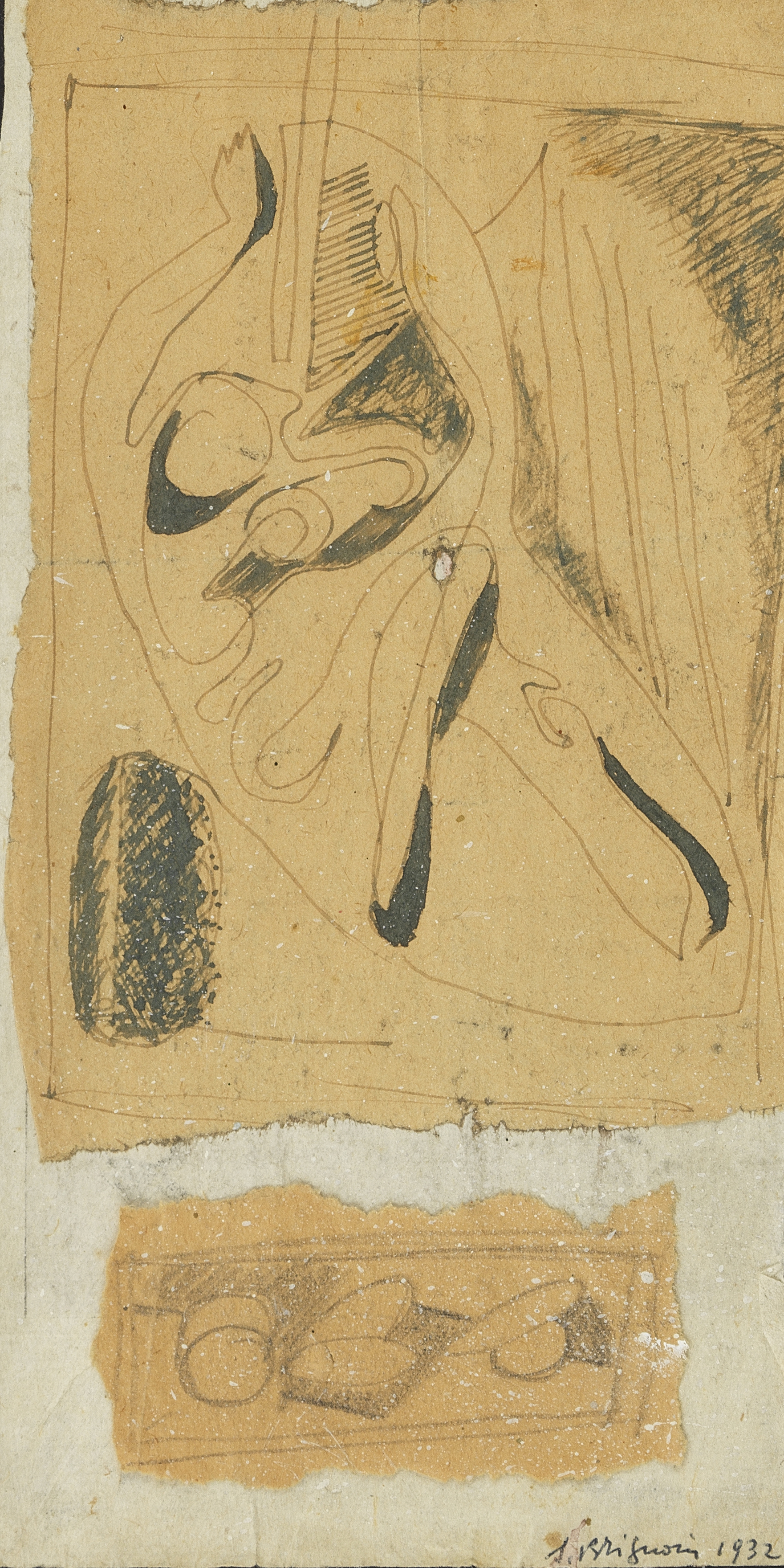 Sans titre, crayon et encre sur papier, signé et daté 1975, 23,5...