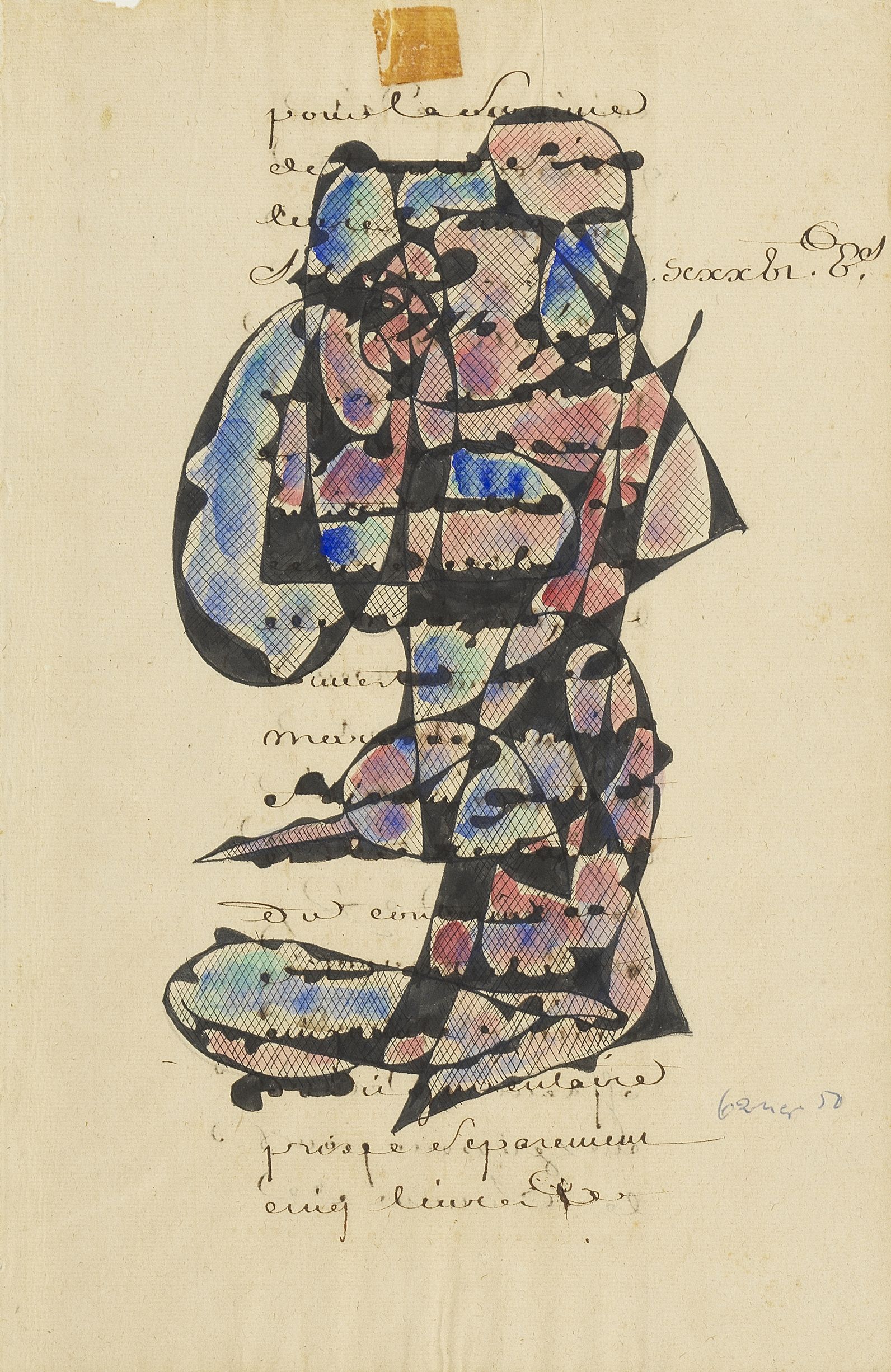 Abstraction aux visages, aquarelle et gouache sur papier, monogr...