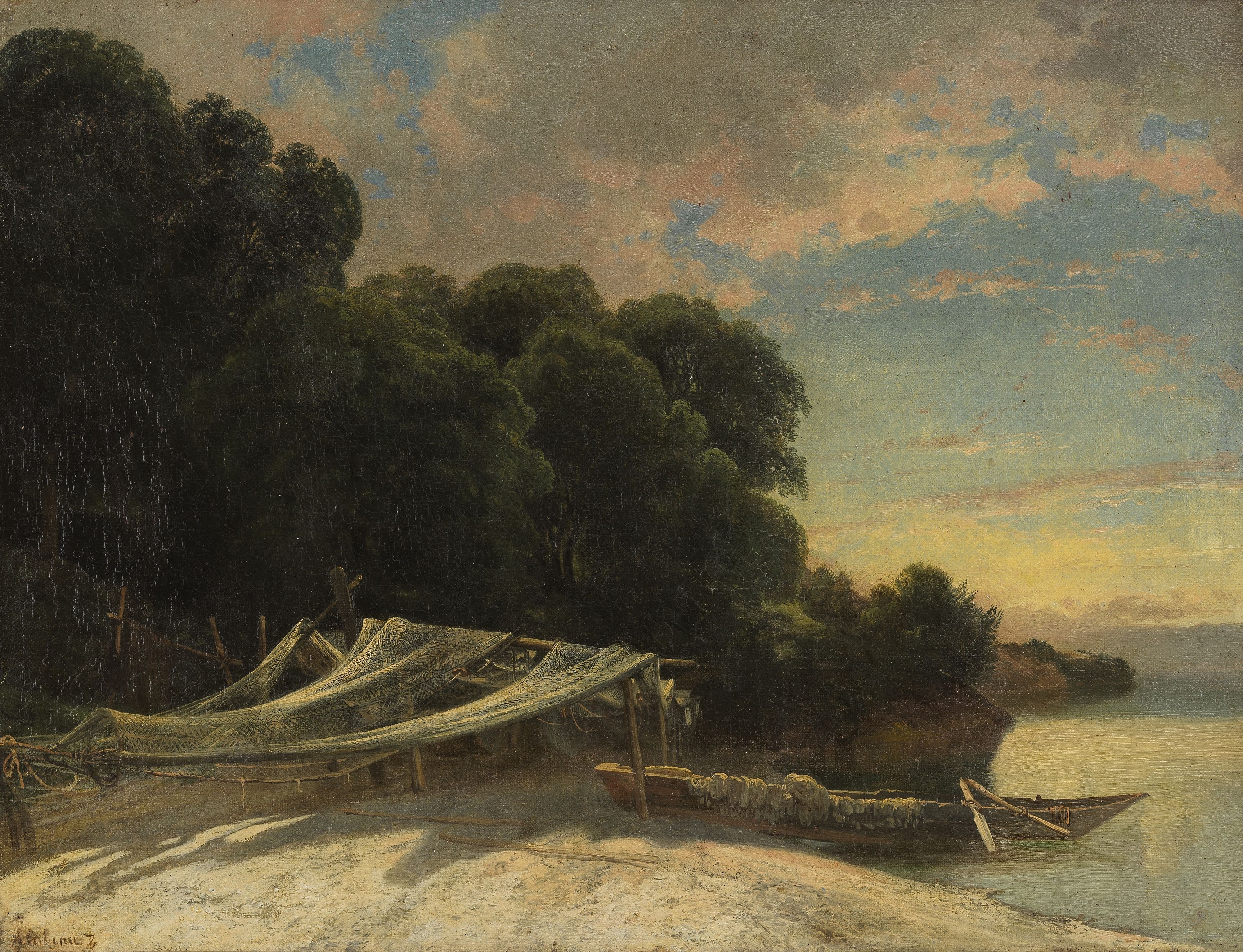 Filets de pêche sechant, huile sur toile, 33x44 cm