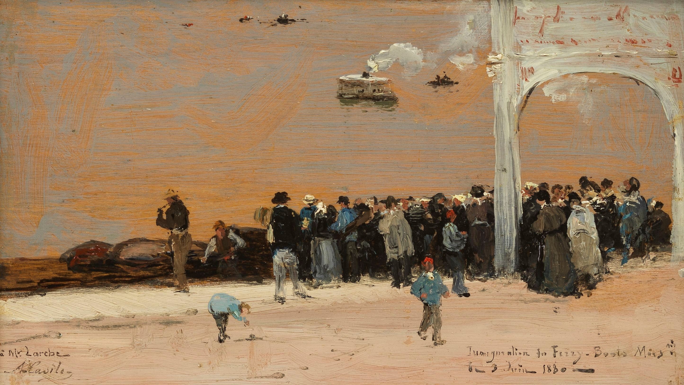 Inauguration du Ferry Boat, huile sur panneau, signée et datée 1...