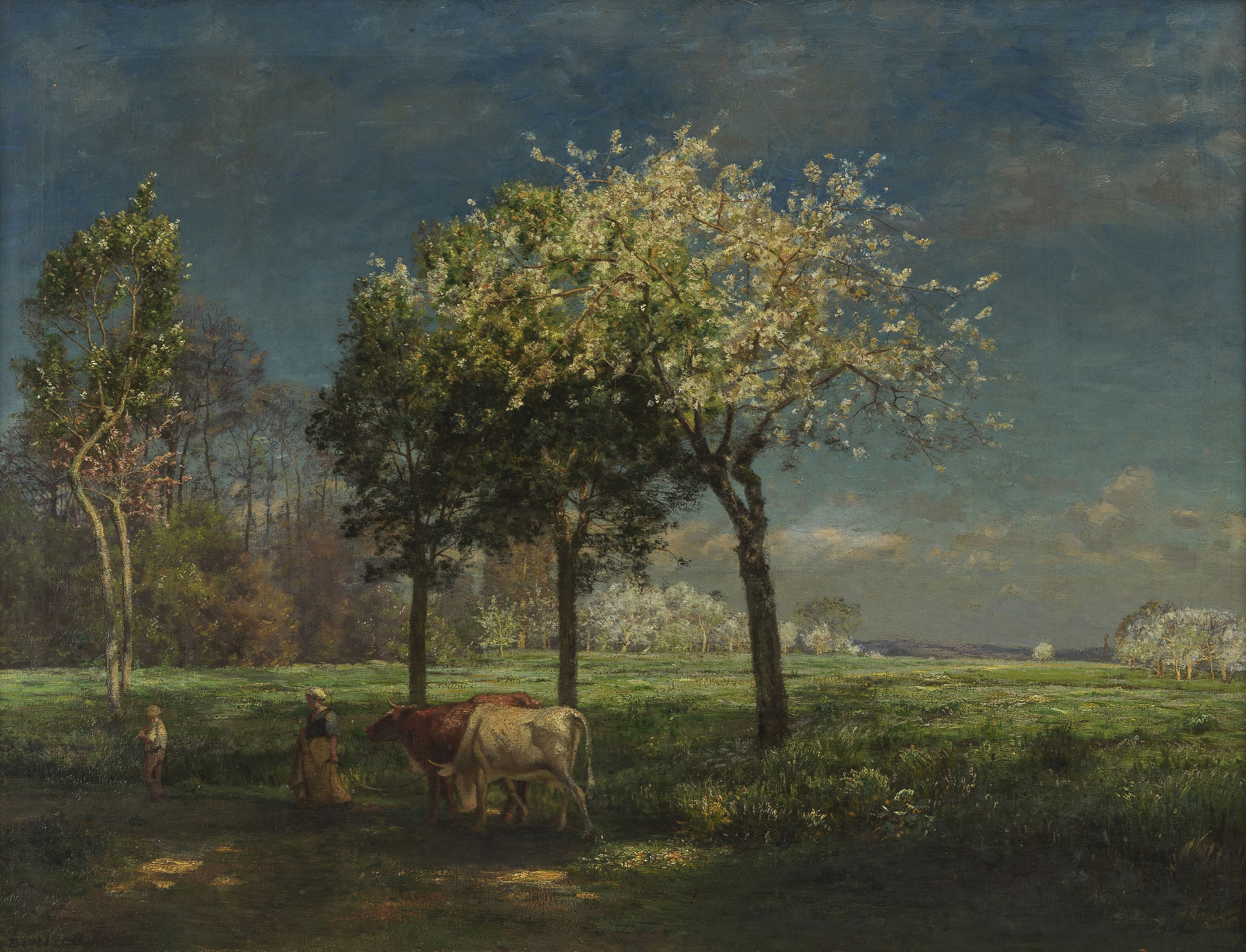 Travaux des champs, huile sur toile, signée et datée 1879, 42x50...