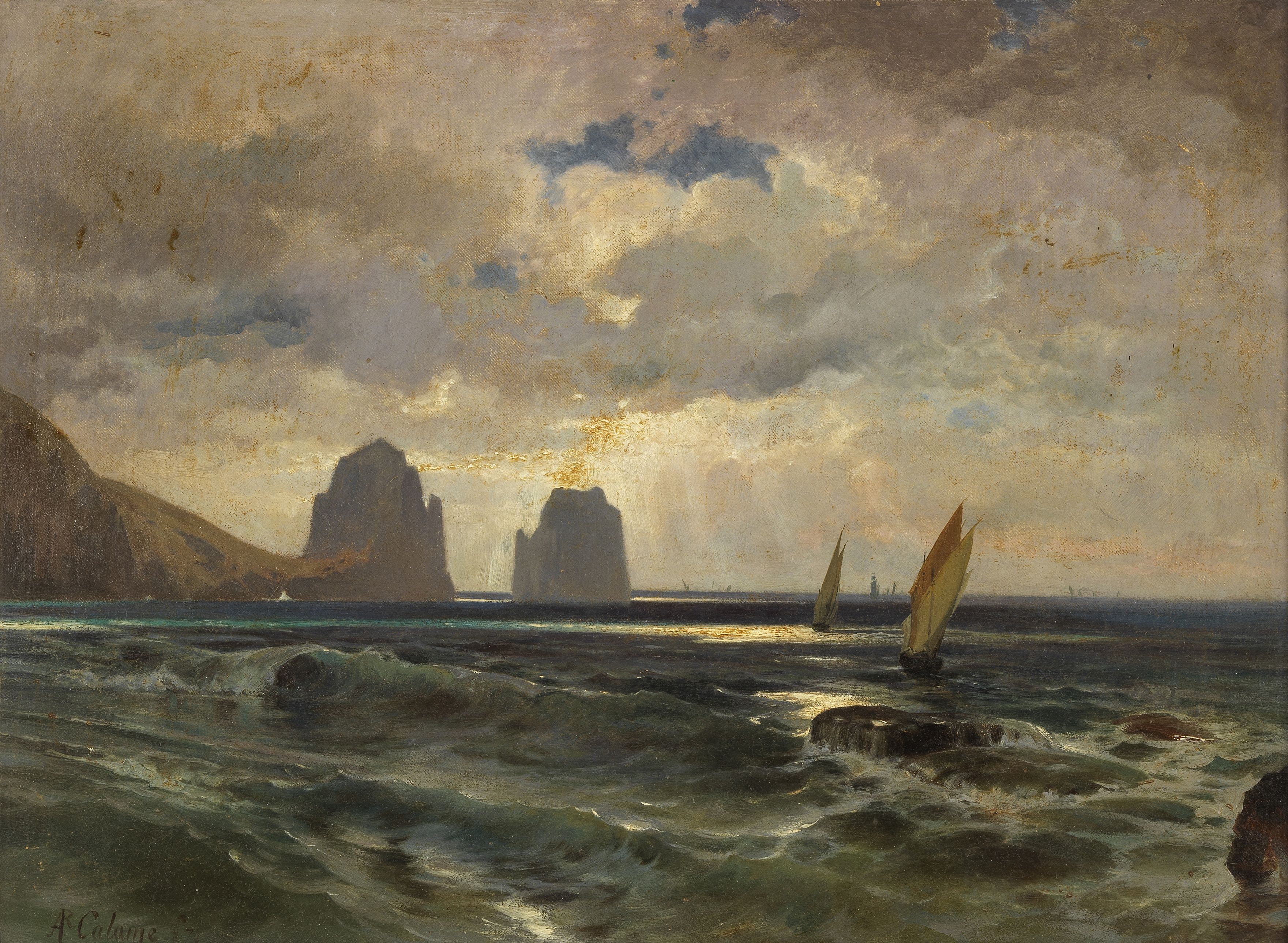 Les voiliers à Capri, huile sur toile, signée, 45x60 cm