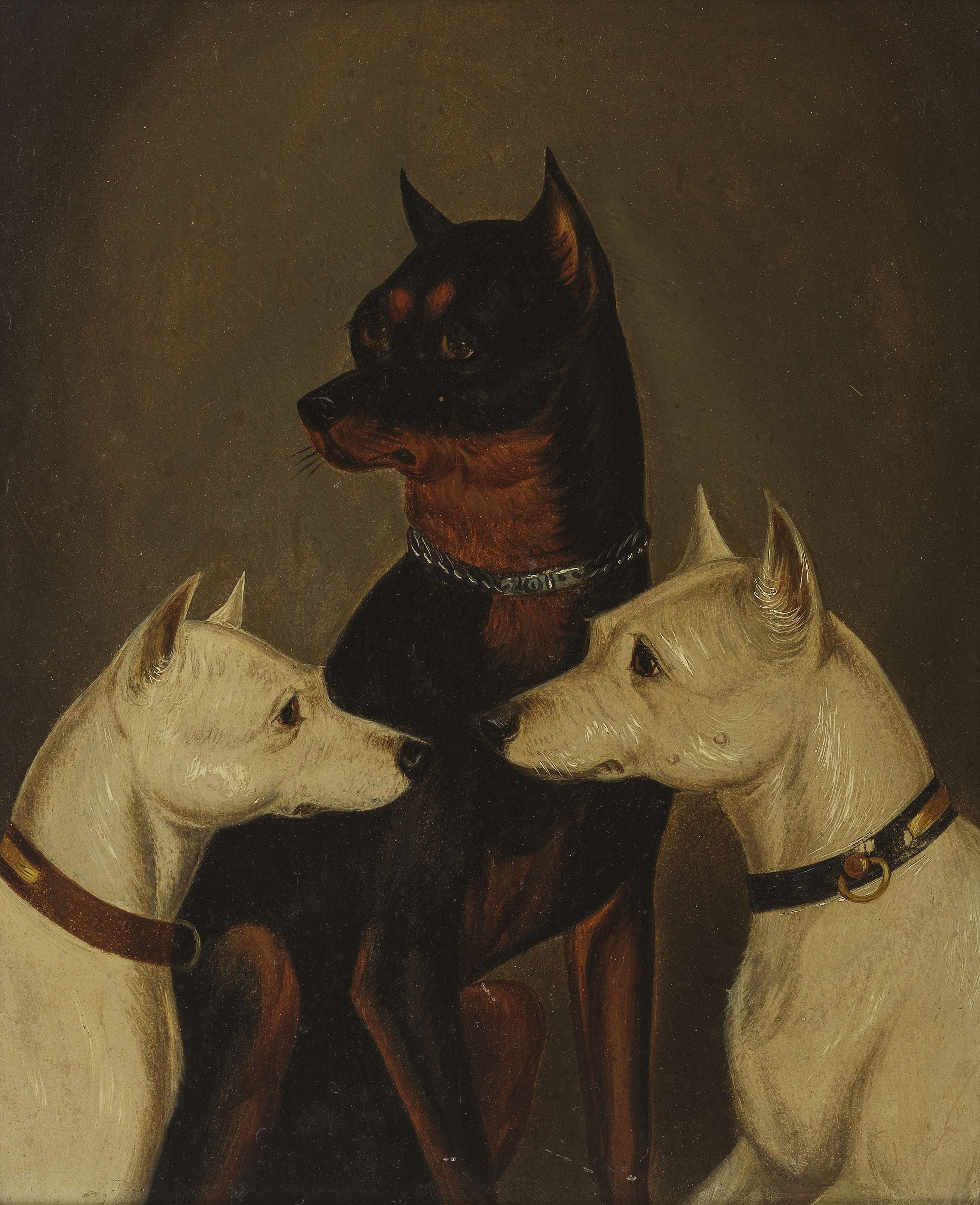 Bull Terriers, huile sur carton, 26x22 cm