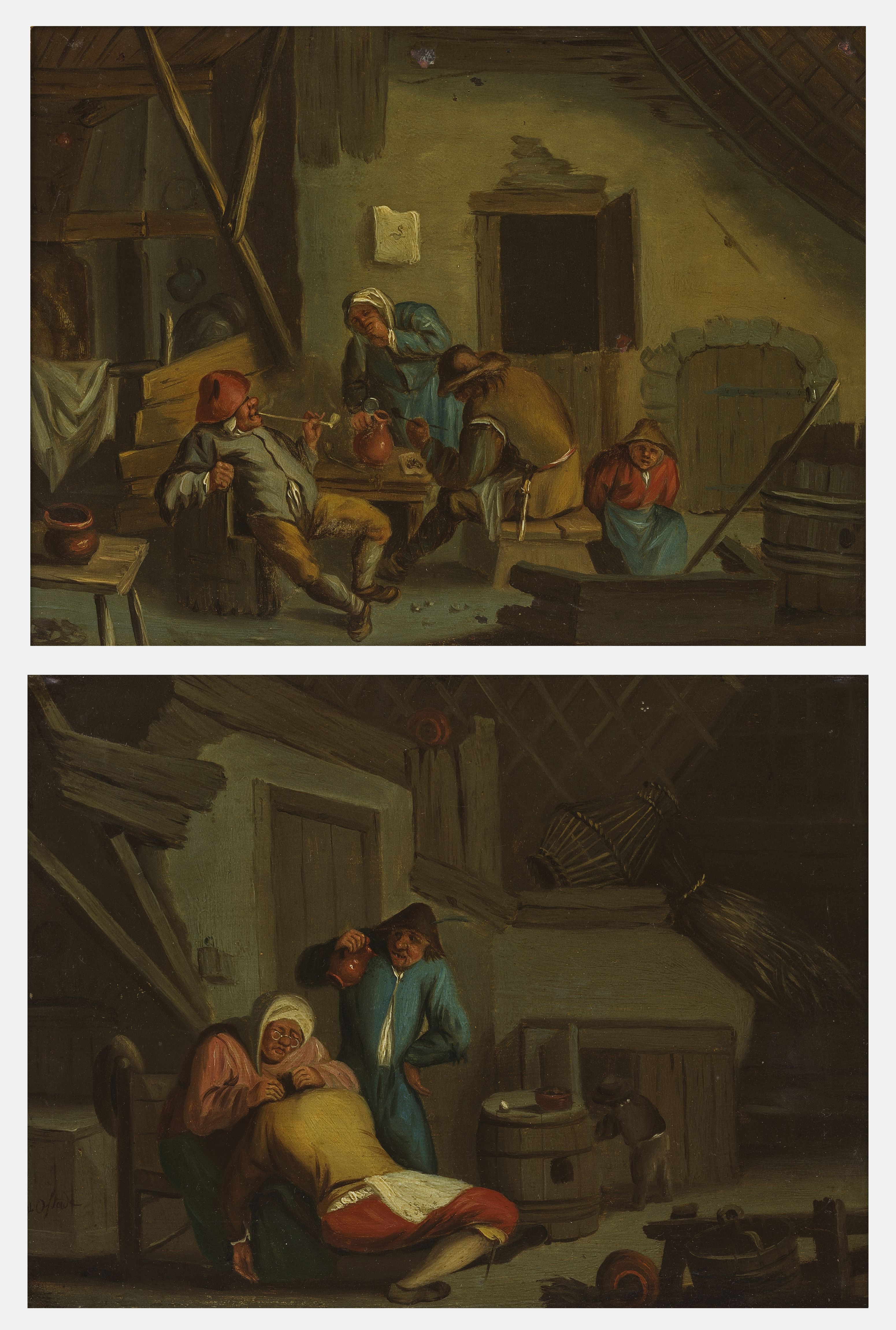 Scènes de tavernes, paire d'huiles sur cuivre, 17,5x24 cm