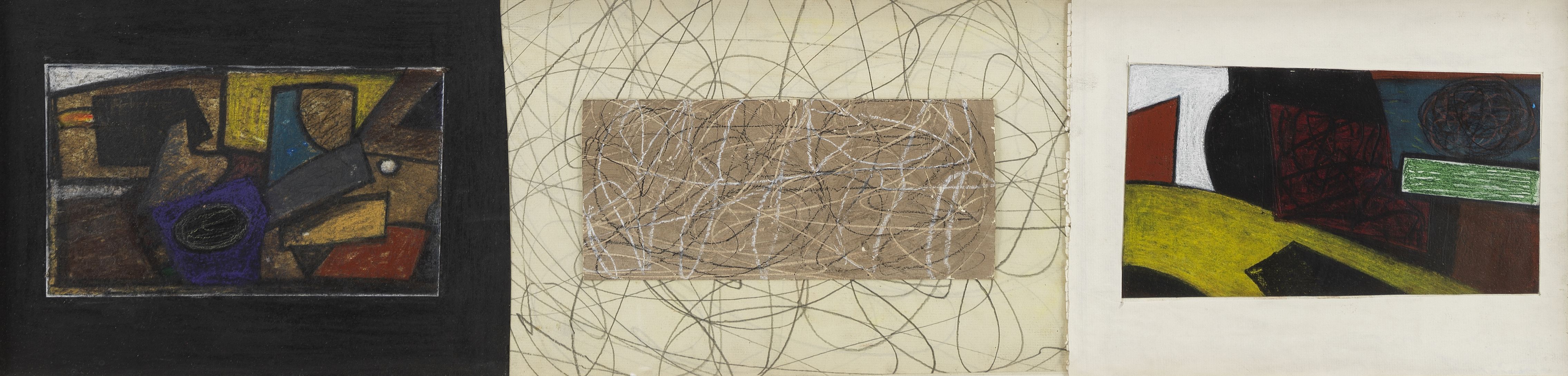 Airport triptyque, technique mixte, signée et datée 1991, 24x95...