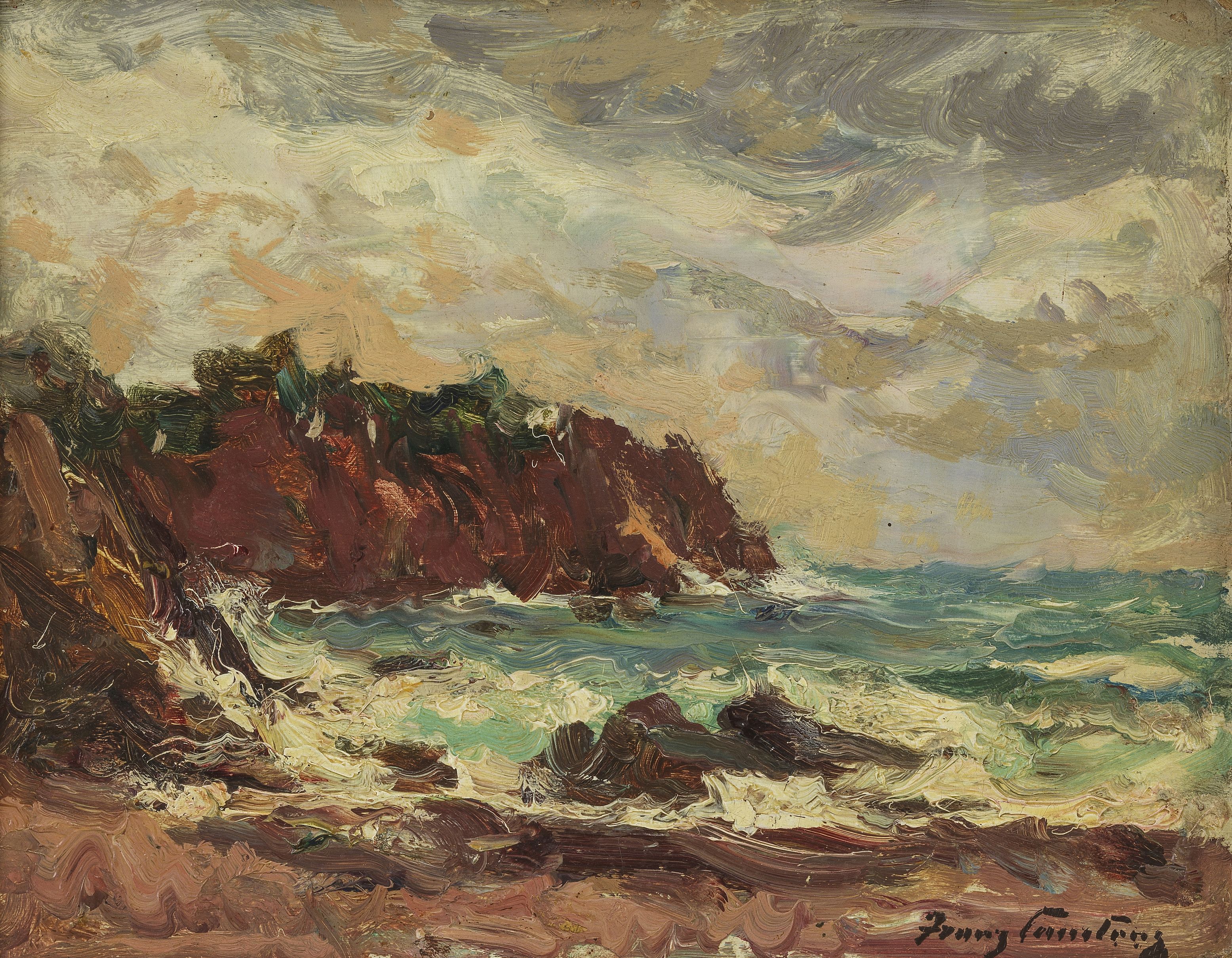 La houle: étude de mer, huile sur carton signée, datée au verso...