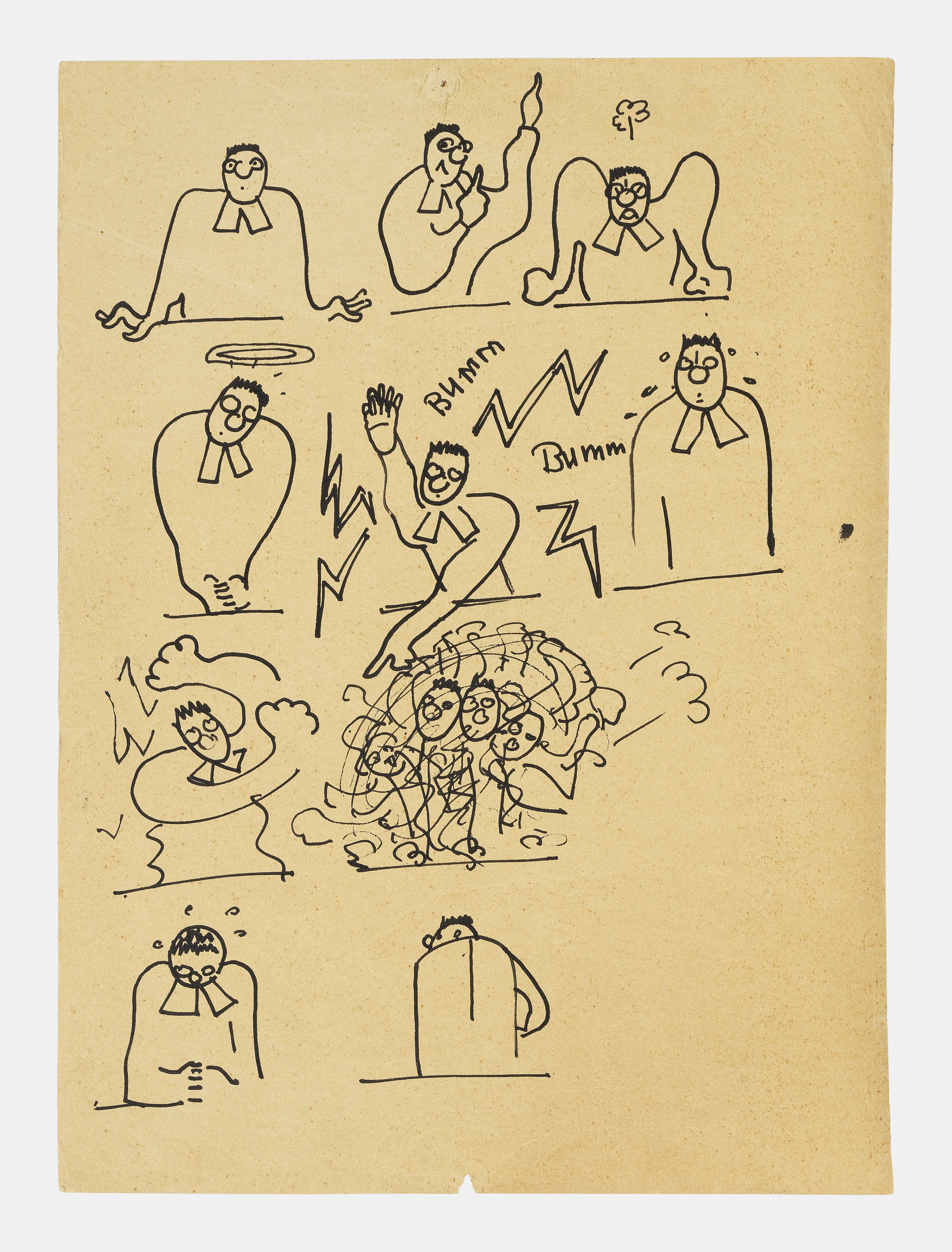 Caricatures du père de l'artiste, feutre sur papier, 33,5x24,6 c...