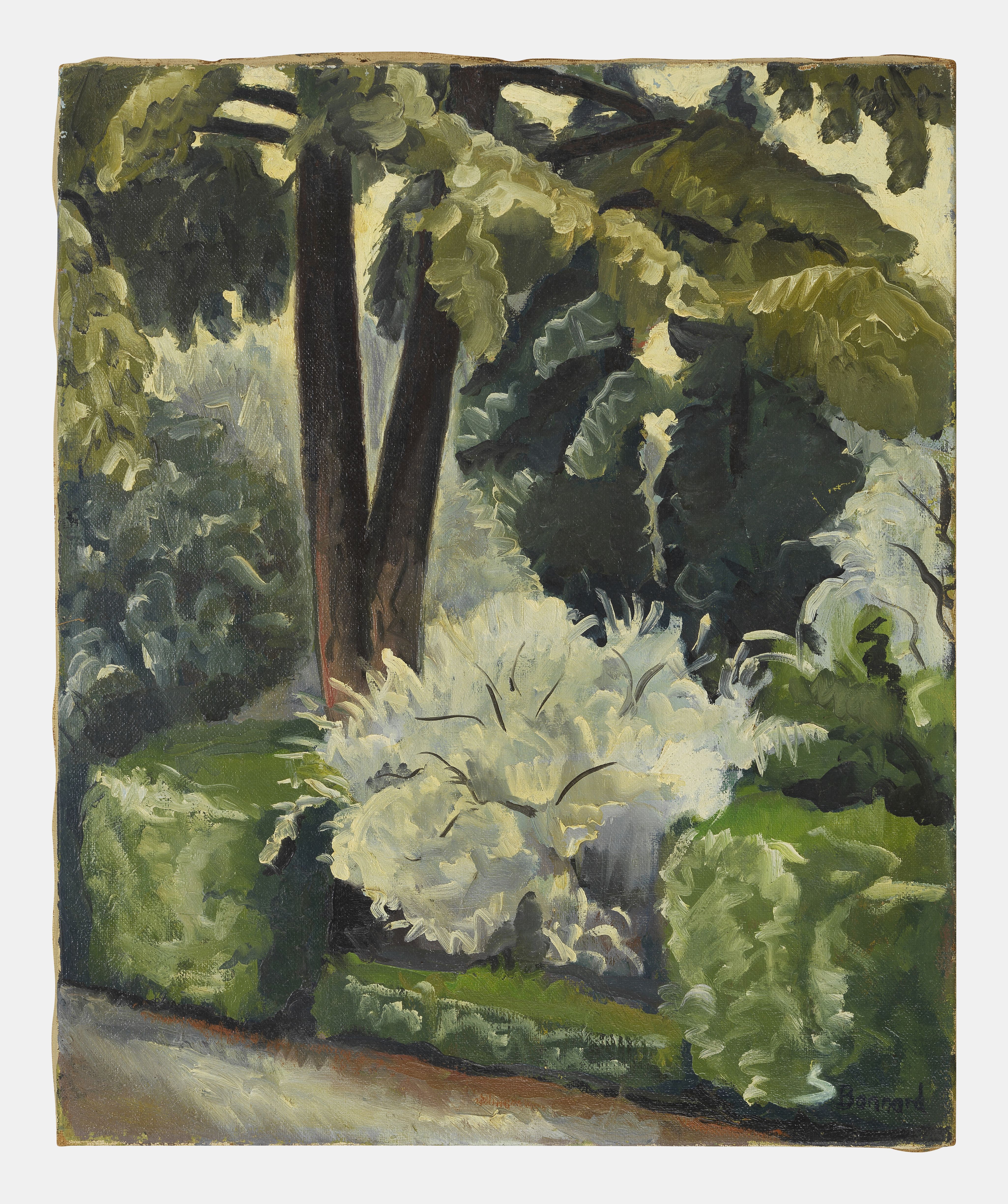 Le jardin, huile sur toile, signée, 65x54 cm