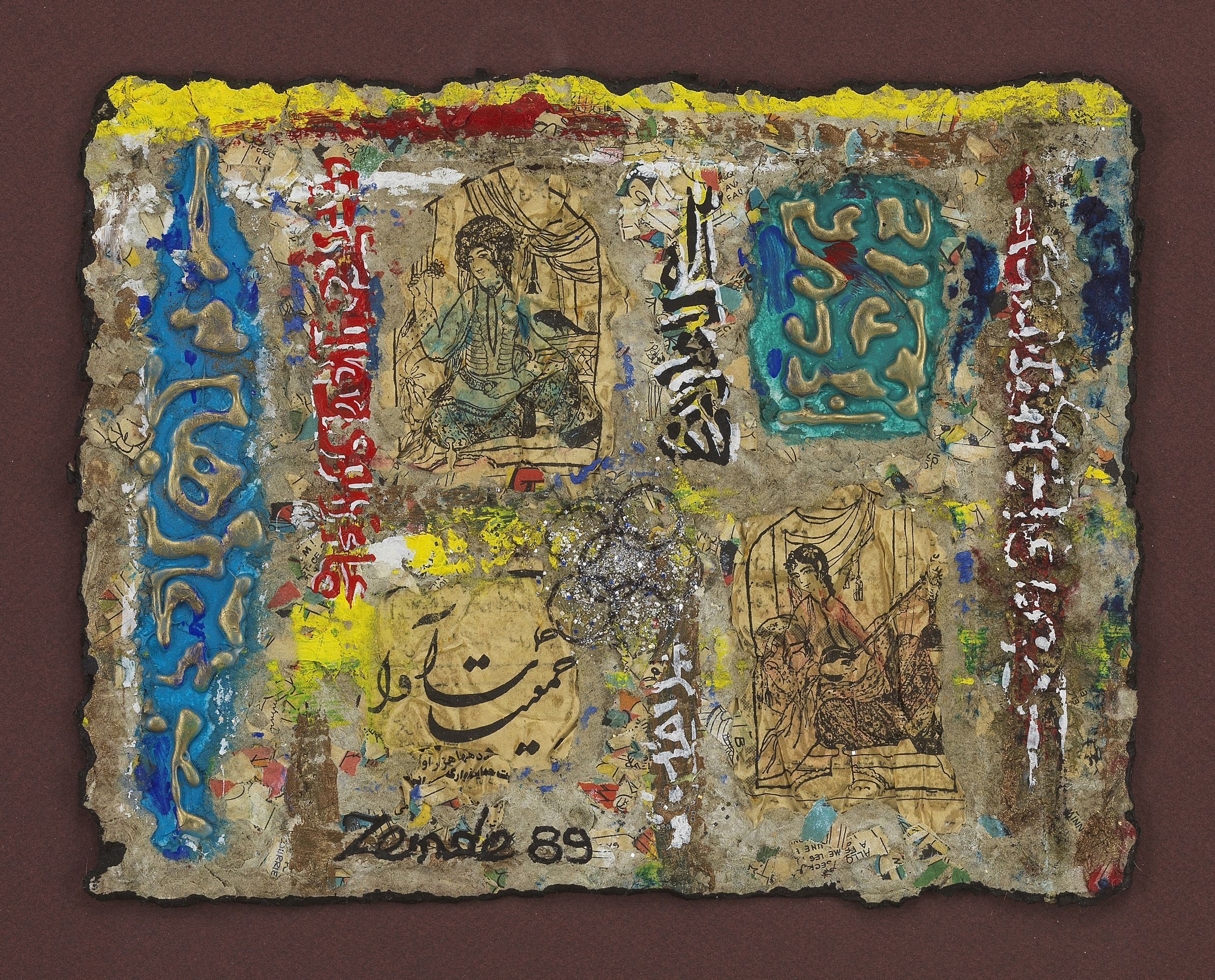Composition calligraphique, technique mixte sur papier mâché, si...