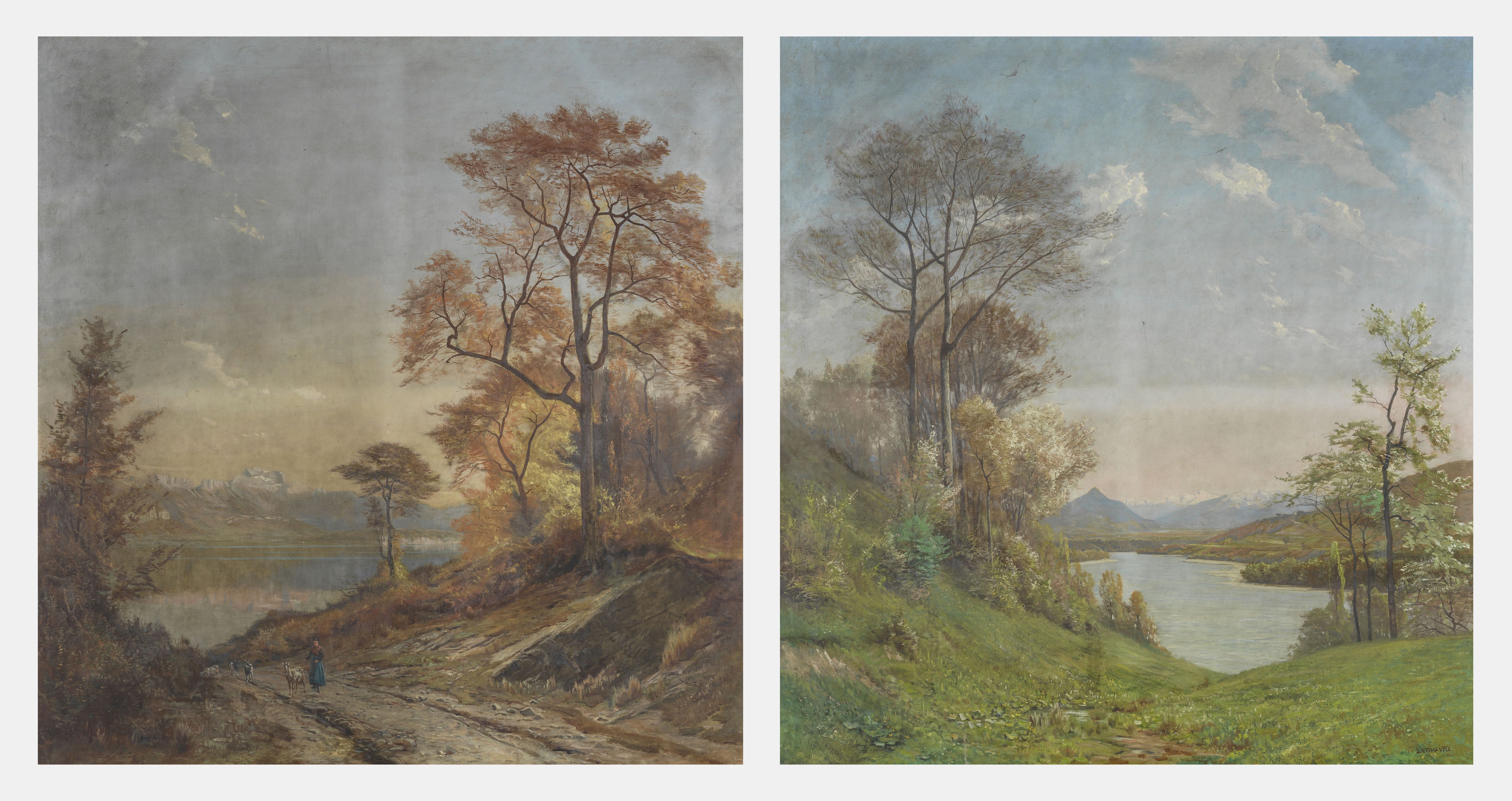 Printemps et automne, deux huiles sur toile, l'une signée, 176x1...