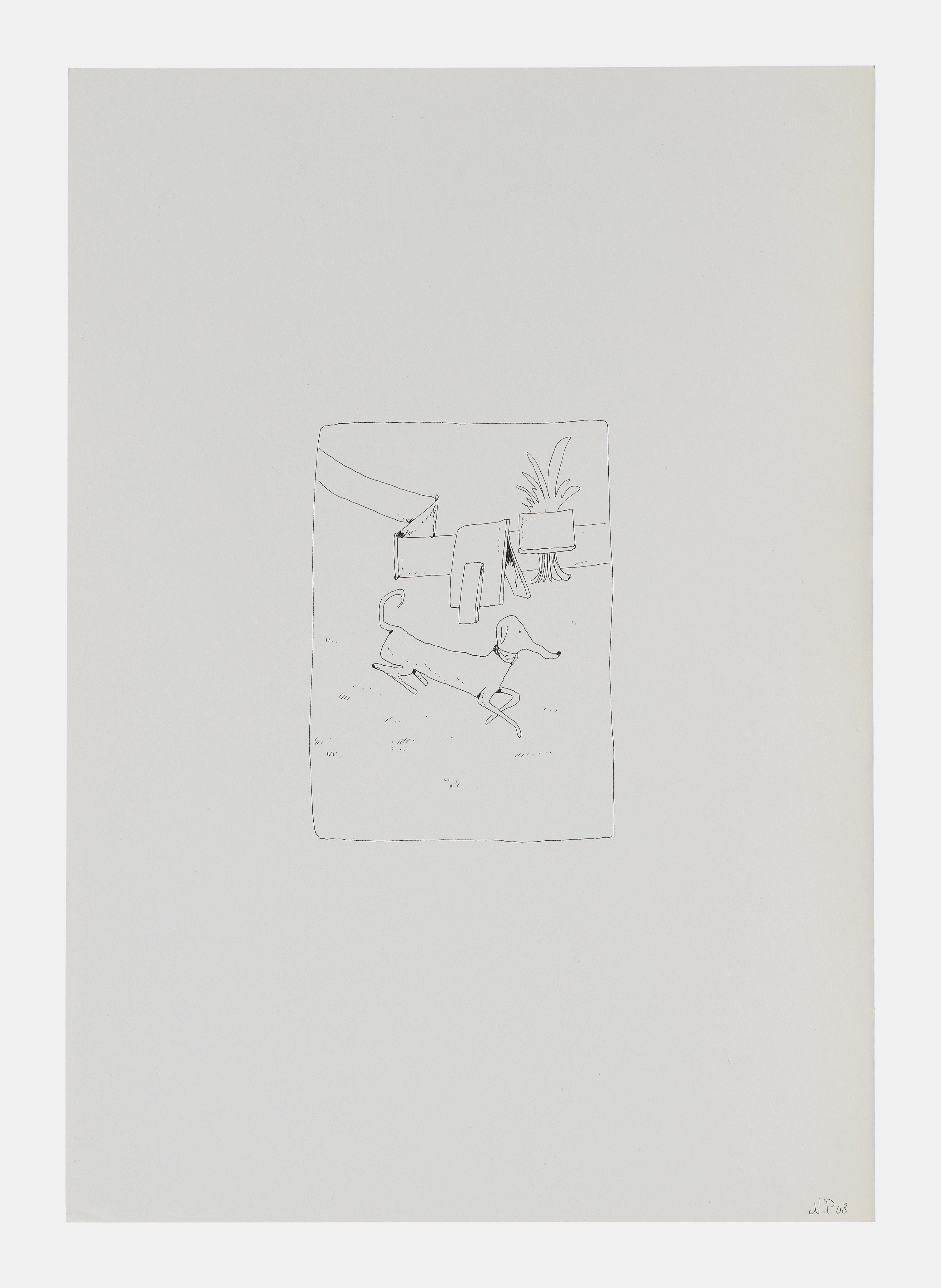 Chien, encre sur papier, monogrammée et datée 08, 29,7x21 cm
