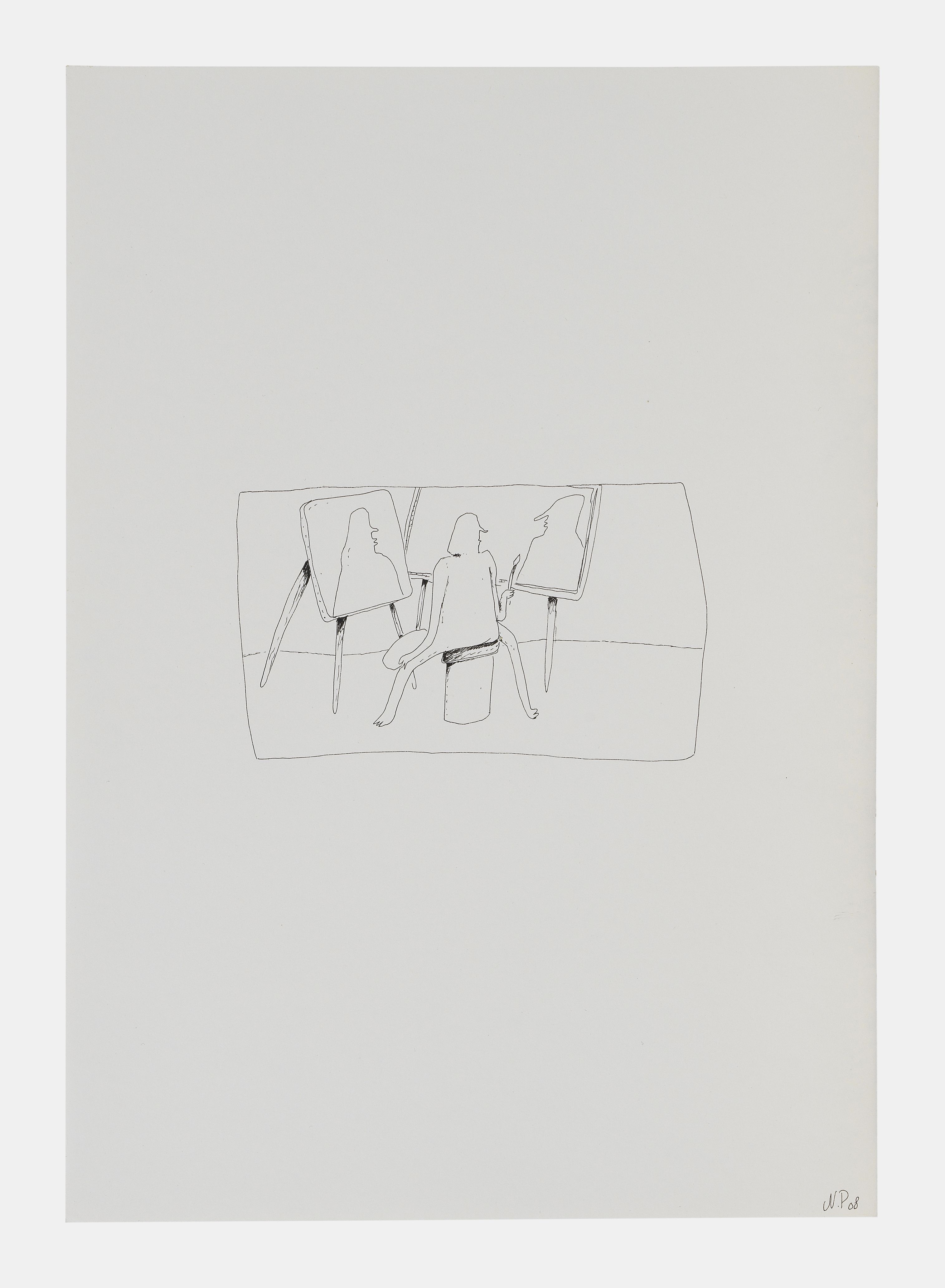 Le peintre, encre sur papier, monogrammée et datée 08, 29,7x21 c...