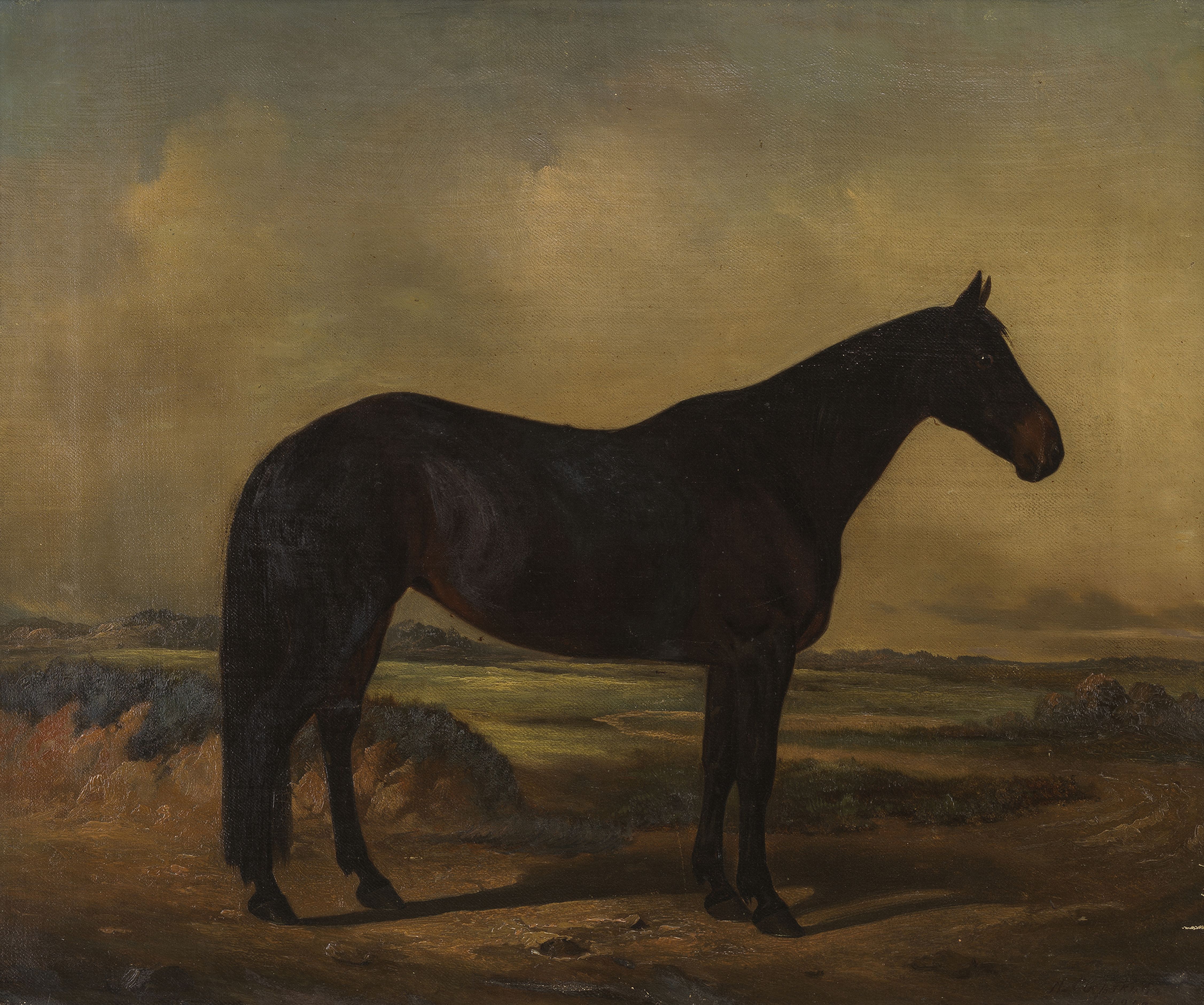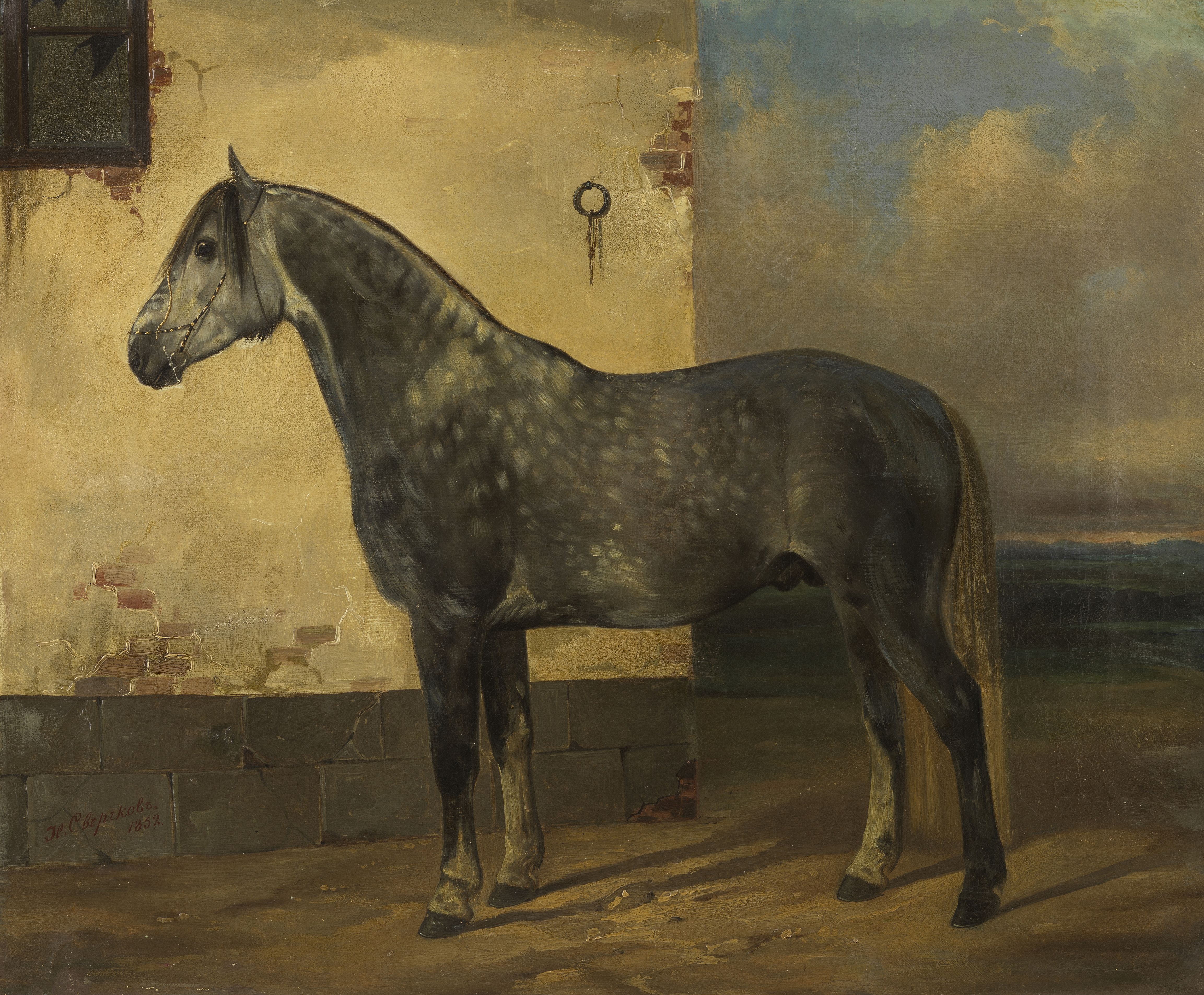 Etalon gris pommelé, huile sur toile, signée et datée 1852, 48,5...