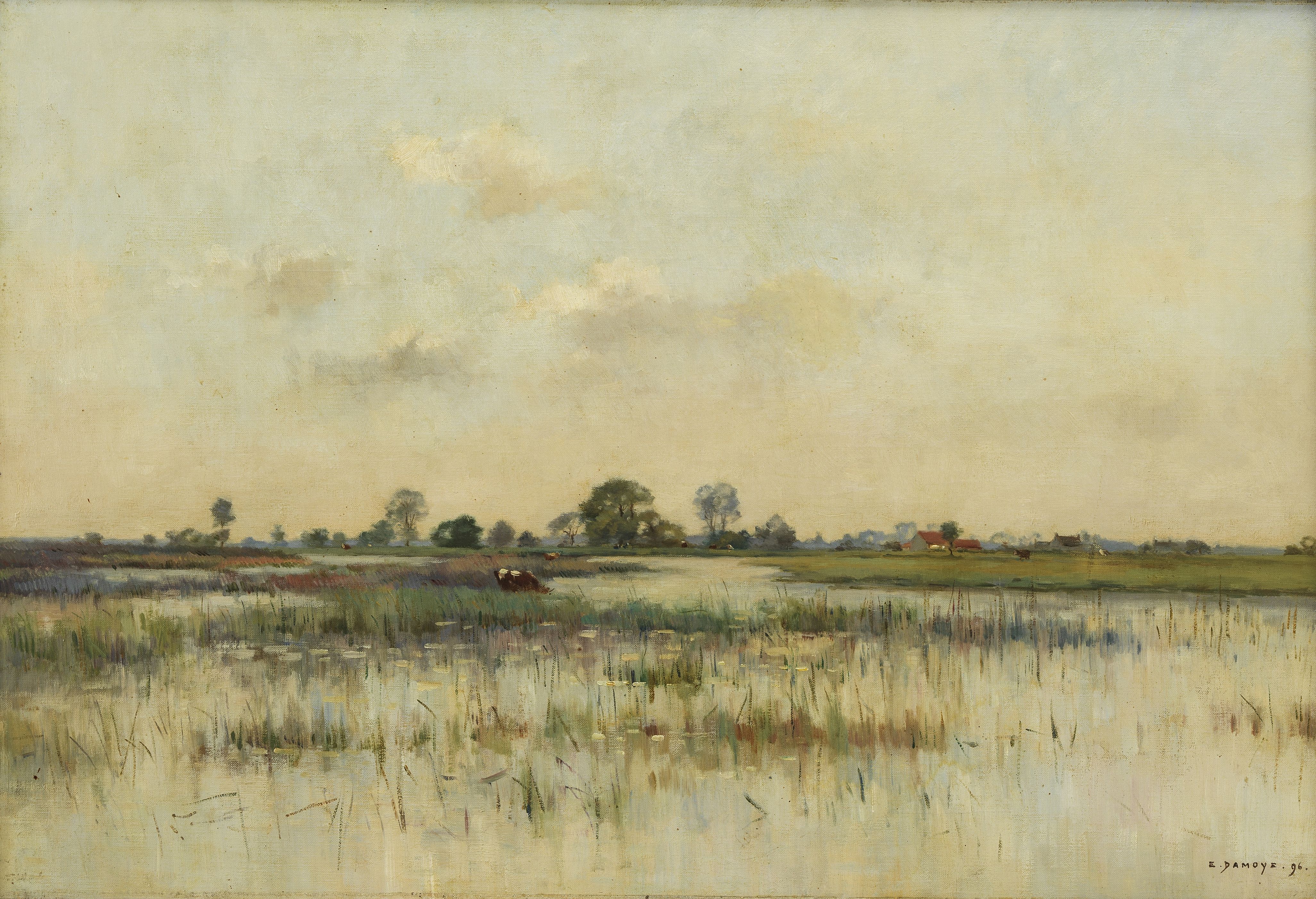 Paysage à la mare, huile sur toile, 31,5x39 cm