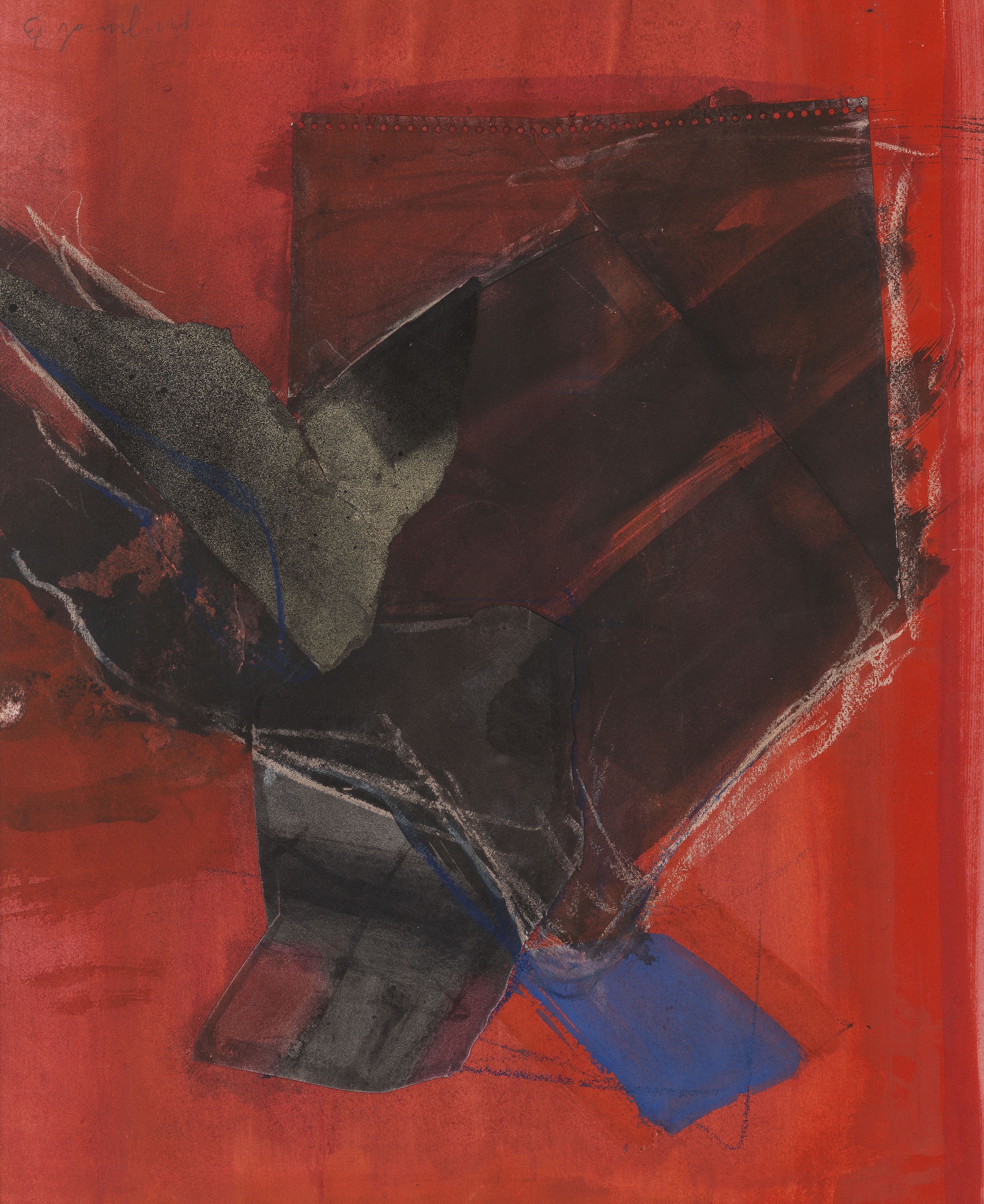 Nachtflung, technique mixte, signée et datée 75, 16,5x19,5 cm