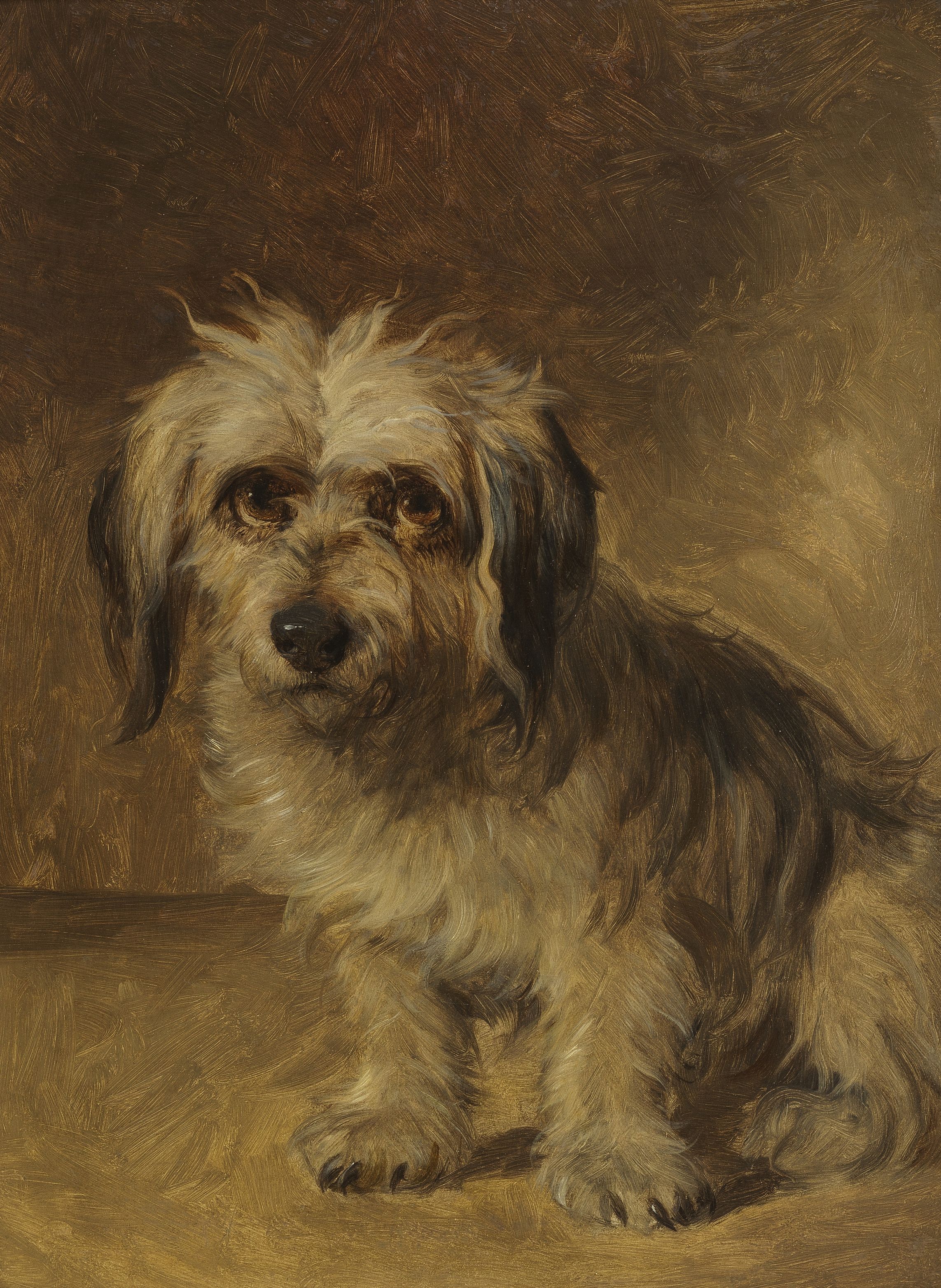 Dandie Dinmont, huile sur carton, non signée, 30,5x40,5 cm